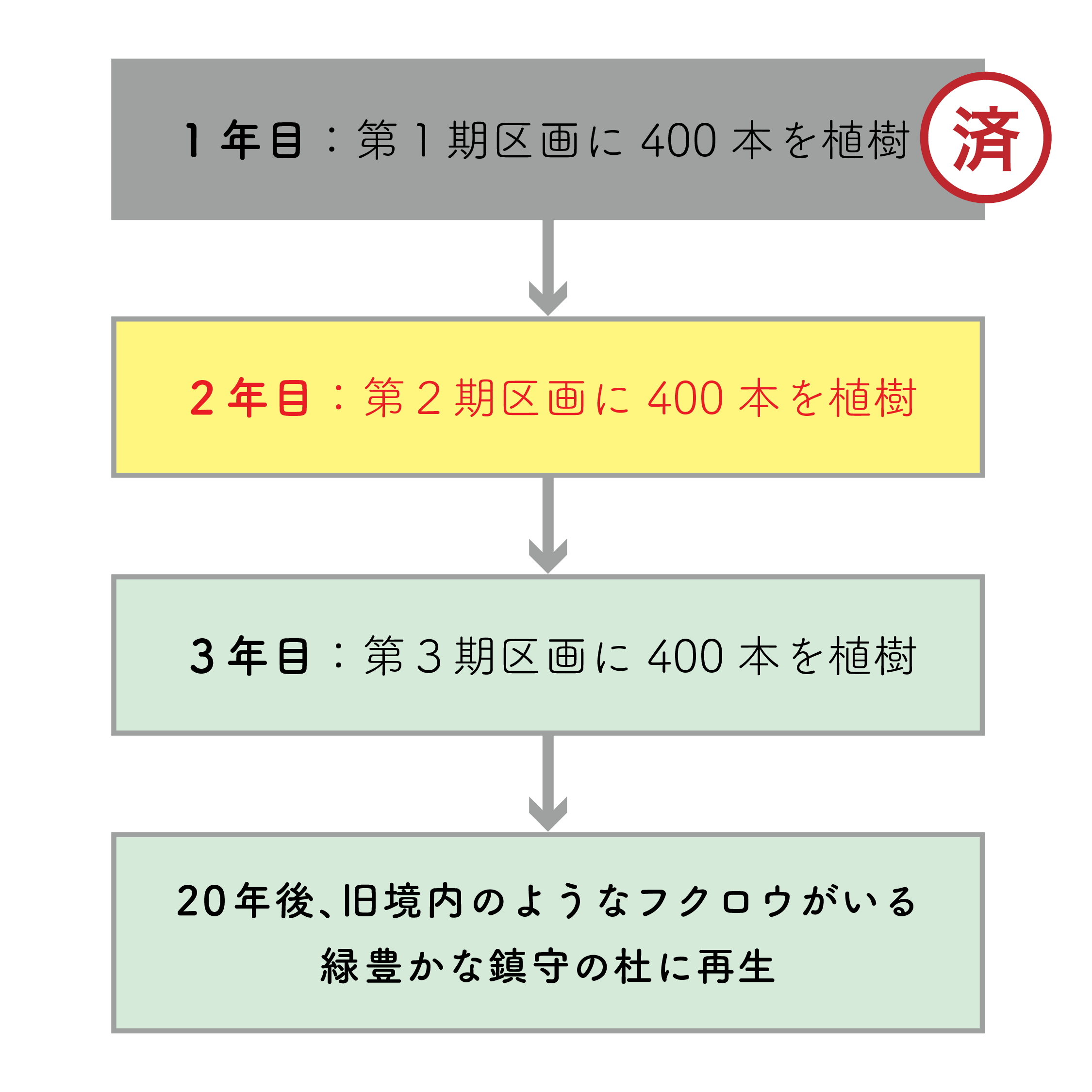 全3期を通じて完成した鎮守の杜を、今度は私たち自身が責任を持って『次の世代』へ受け継ぐ。そんな長いスパンでの挑戦に、引き続きご参加いただければ幸いです。