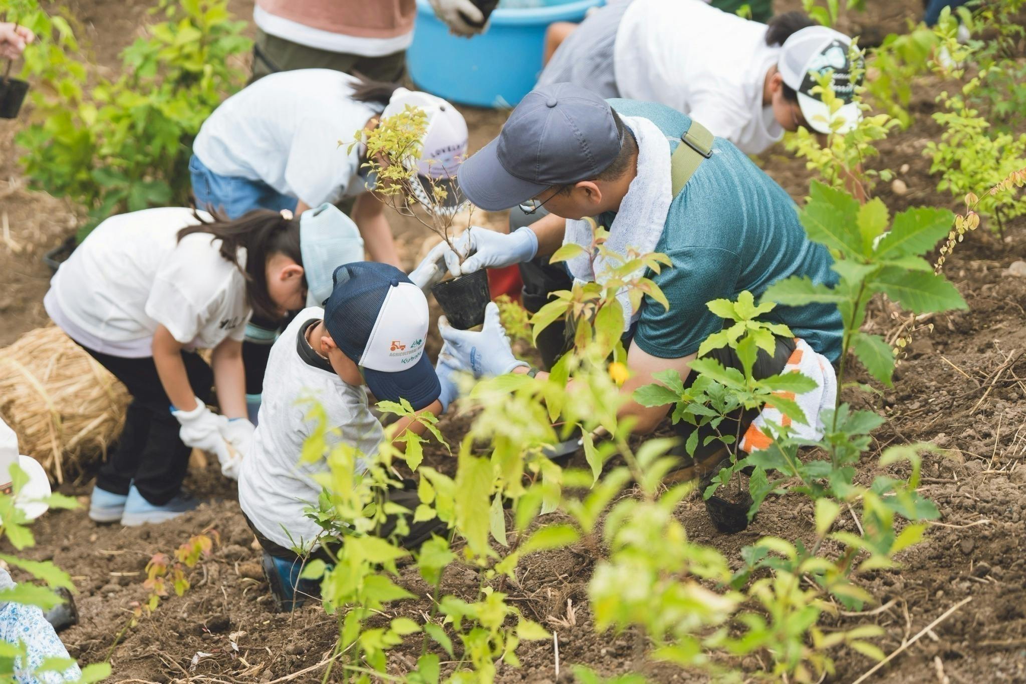 『100年後、200年後、さらには1000年先まで続く森を育てる』という、長期的なビジョンのもとで今年(令和7年)の第2期も400本の植樹を予定。苗木たちが共生しあい、地上だけでなく地下で根を張りめぐらせることで、より豊かな生態系をつくっていきたいと考えています。
