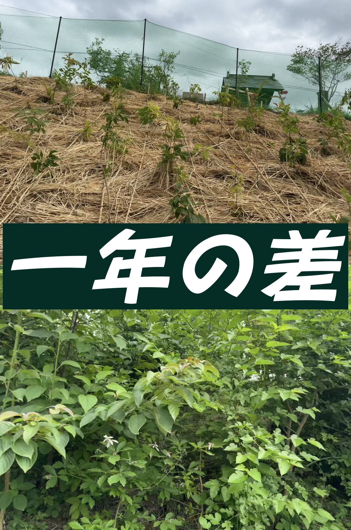 本日は今回植えた苗木と、昨年植えた苗木の成長の差をご覧頂きたく存じます。