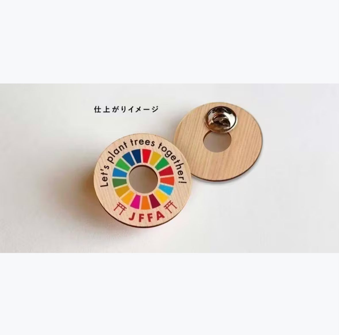 環境に優しい間伐材を使用し、SDGsの理念を象徴するデザインと「一緒に木を植えよう!」というメッセージで、持続可能な未来へ、共に一歩を踏み出す願いを込めています。