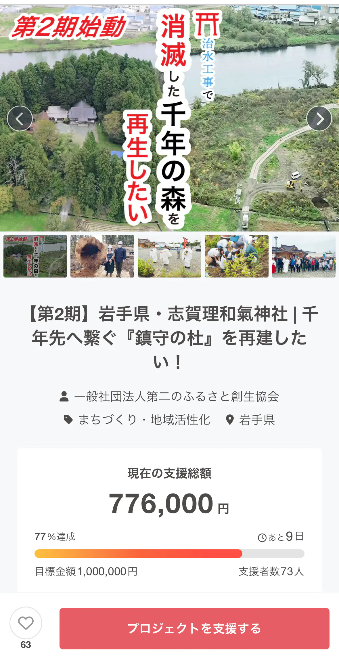 志賀理和氣神社鎮守の杜再生にご支援くださり、誠にありがとうございます。