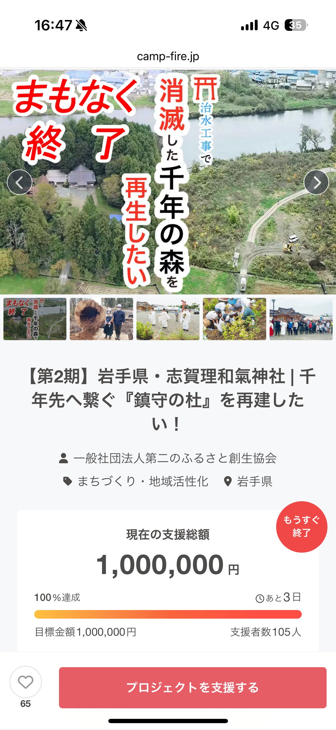 目標金額を超えたご支援につきましては植樹地の維持管理費や、来年以降の植樹費用に充てさせていただきます。