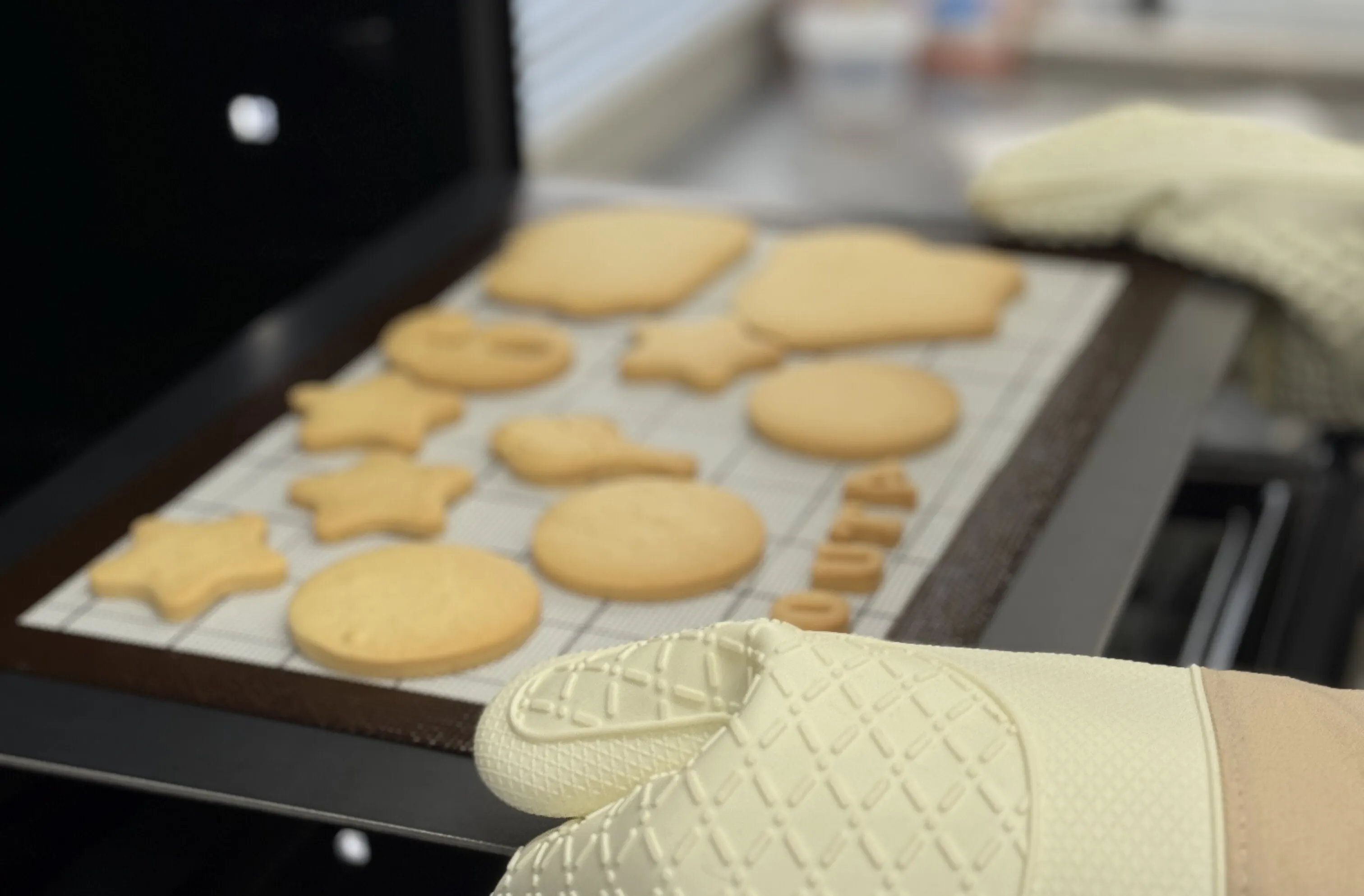 また、食感が固くなりやすい理由は、割れたりひびが入るとアイシングに影響が出るためですが、固すぎないように、普通のクッキーと変わらない食感になるようこだわられたそうです。
