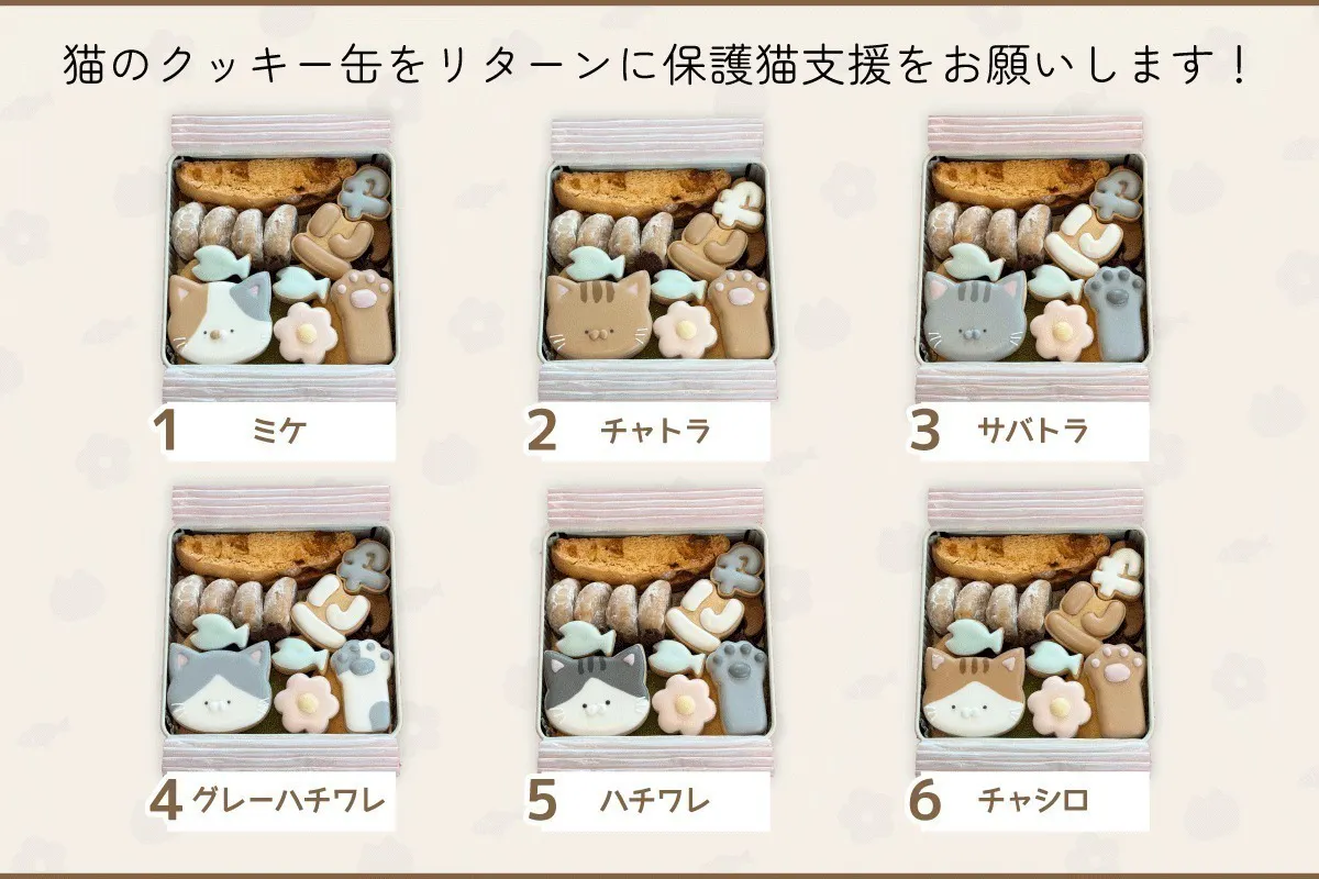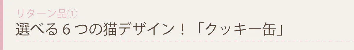▼今回のメインリターン品には、猫柄を選べるクッキー缶をご用意しました。