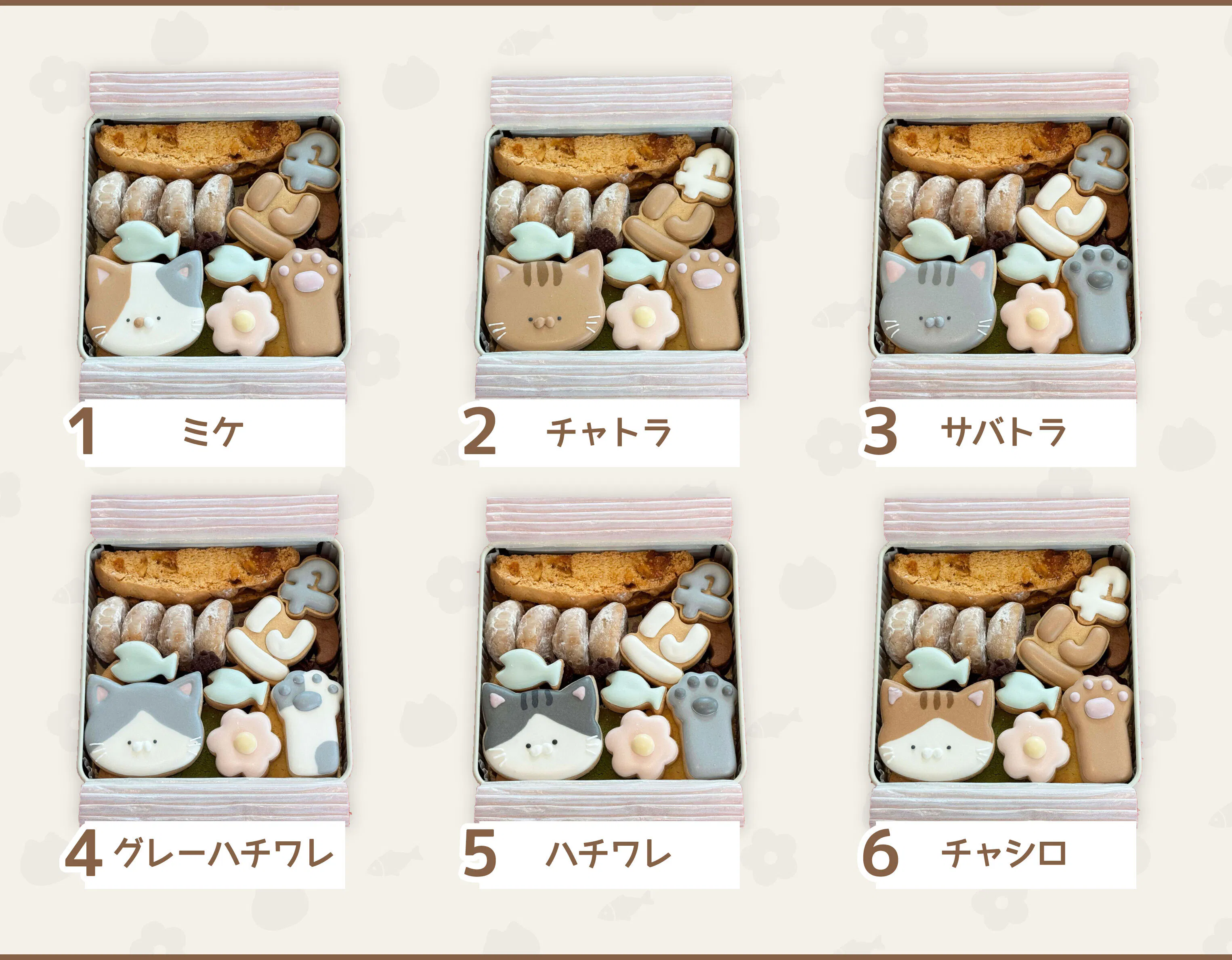 ▼猫柄のアイシングクッキーは、全部で6種類からお選びいただけます!