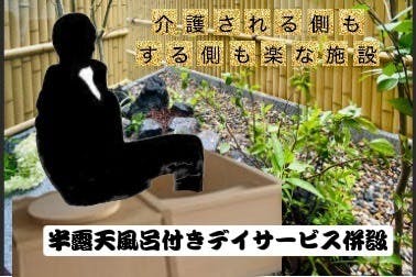 ・デイサービスを併設し、リハビリ・トレーニング・檜の半露天風呂での入浴を可能にし介護者も楽な跨がない浴槽設置。