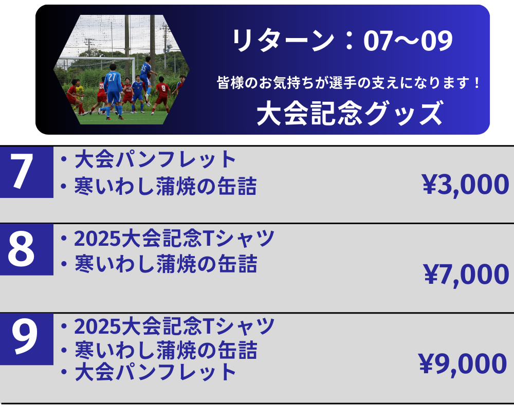 2025大会記念Tシャツなど、本プロジェクトでしか味わえない限定リターンをご用意しております。