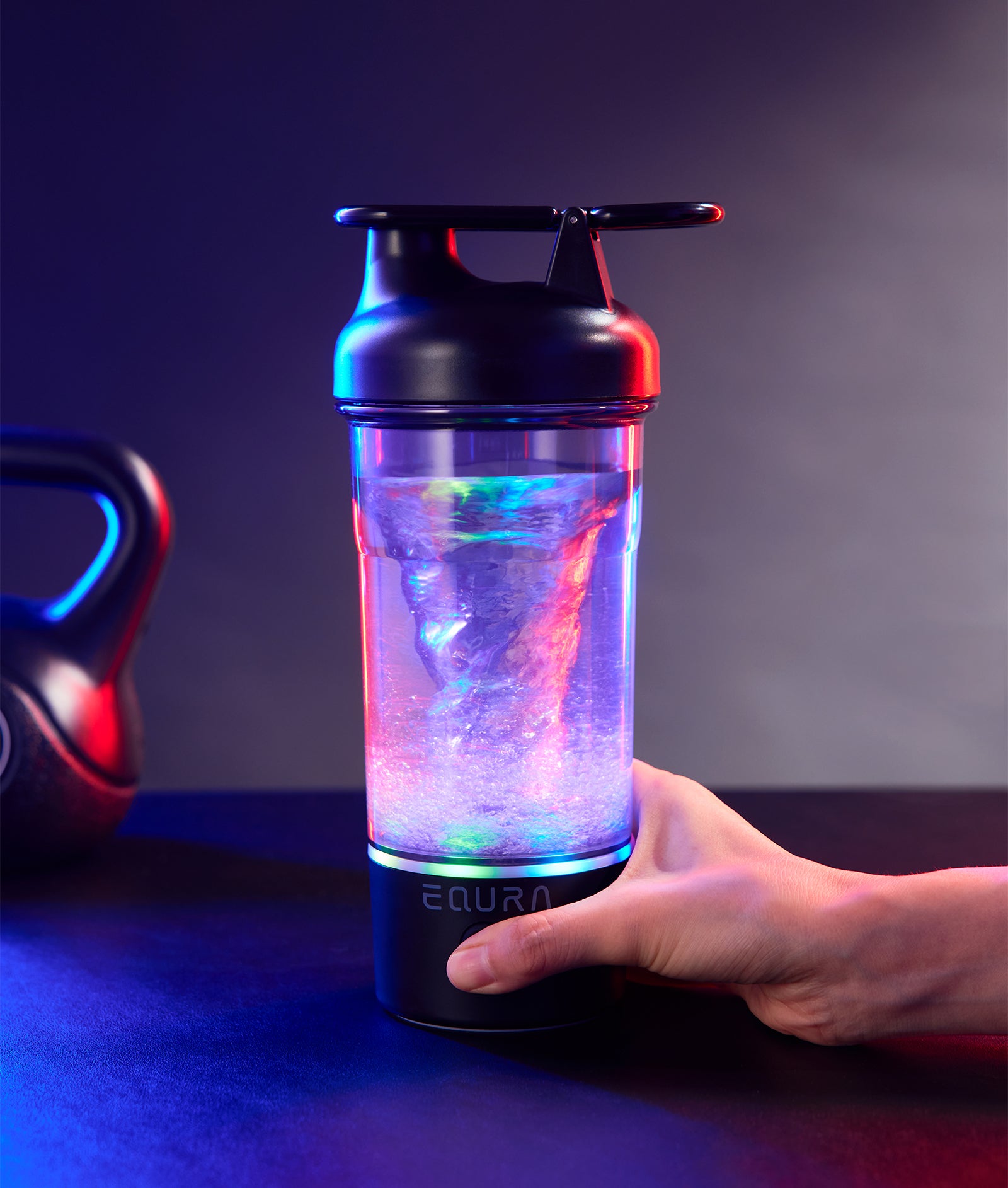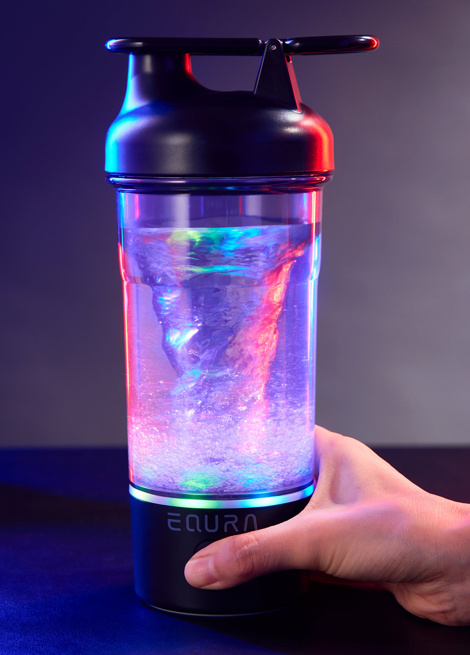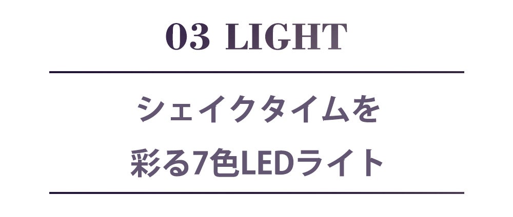 Equra電動シェイカーE-Pluseは、7色に変化するLEDライトを搭載。使うたびに色が変わることで、見た目にも楽しく、毎日のシェイクタイムがさらに魅力的になります。