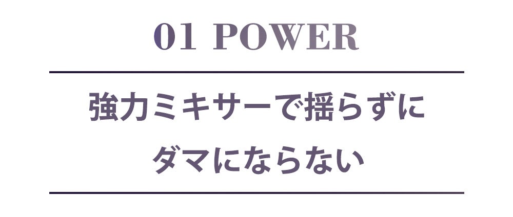 起動と同時に電流が瞬時に最大値に達し、高出力のパワーで食材に強力にアプローチ、固まりやすい成分や粘度の高い材料も簡単にかつスムーズに混ぜ合わせる!