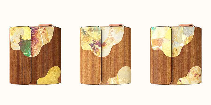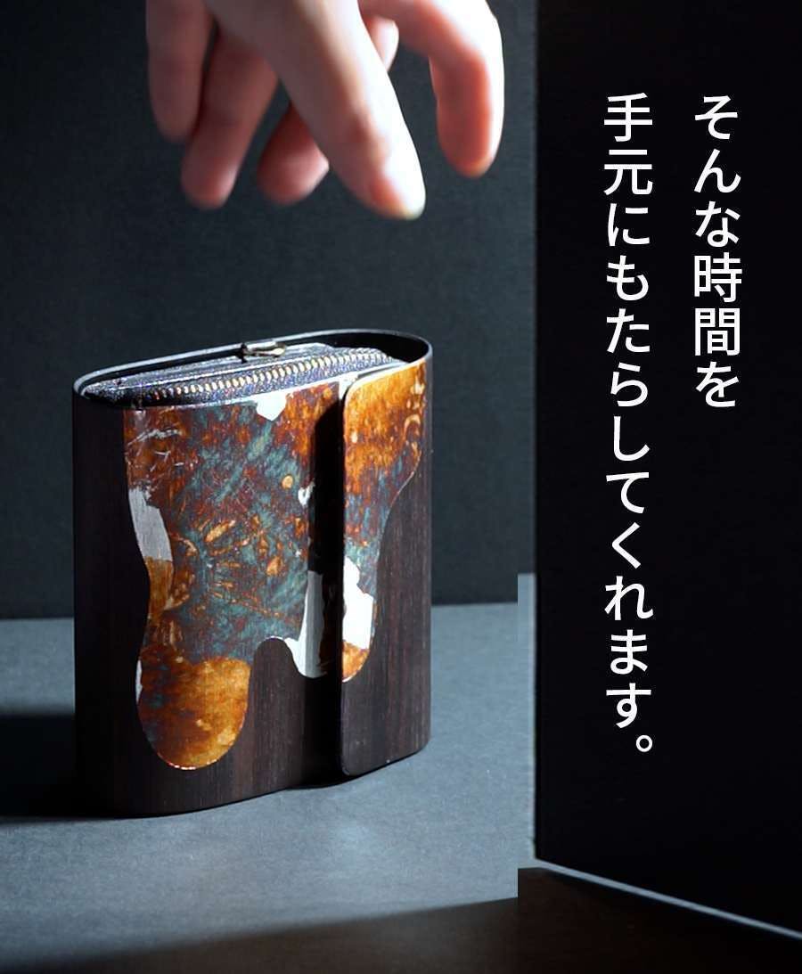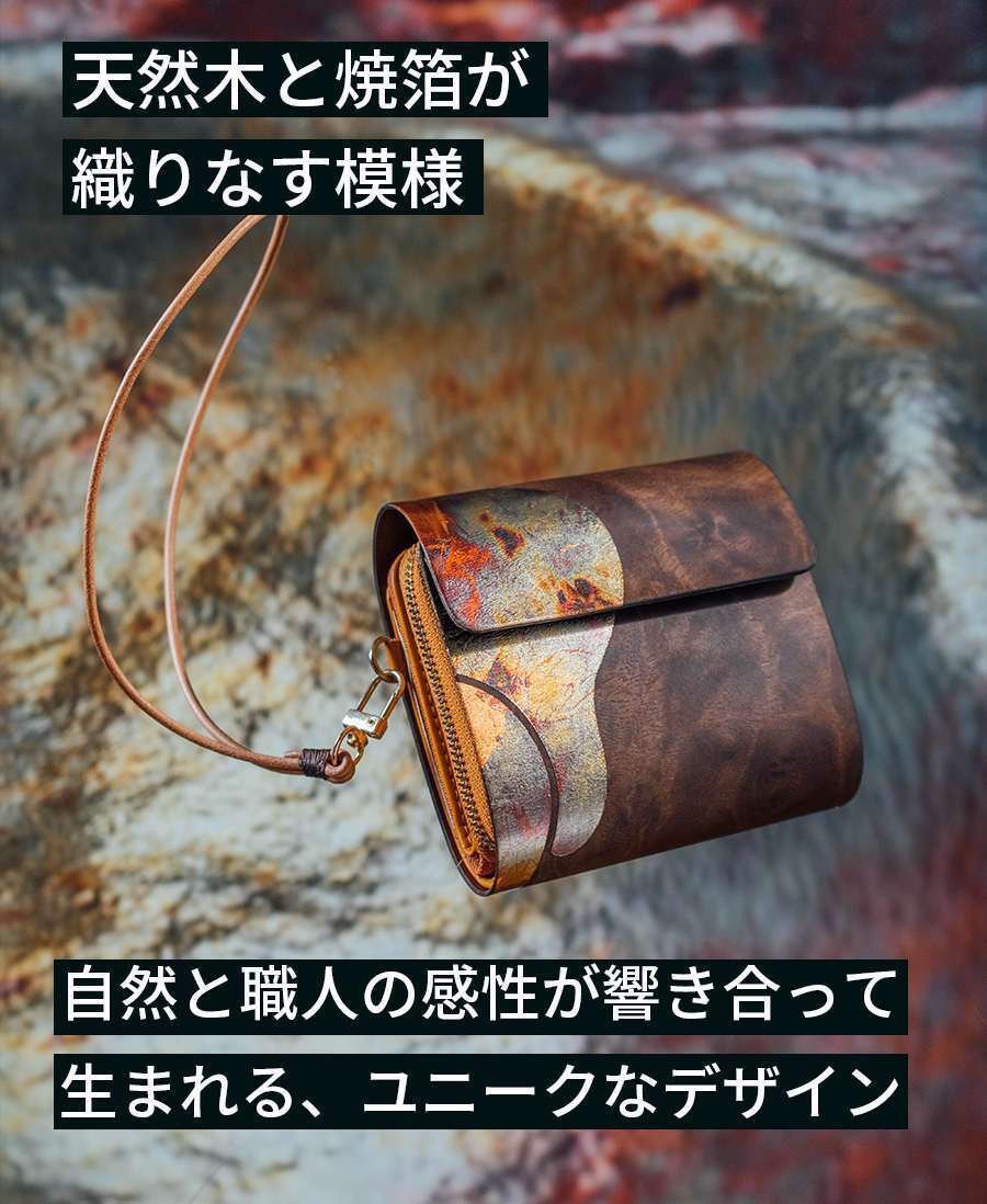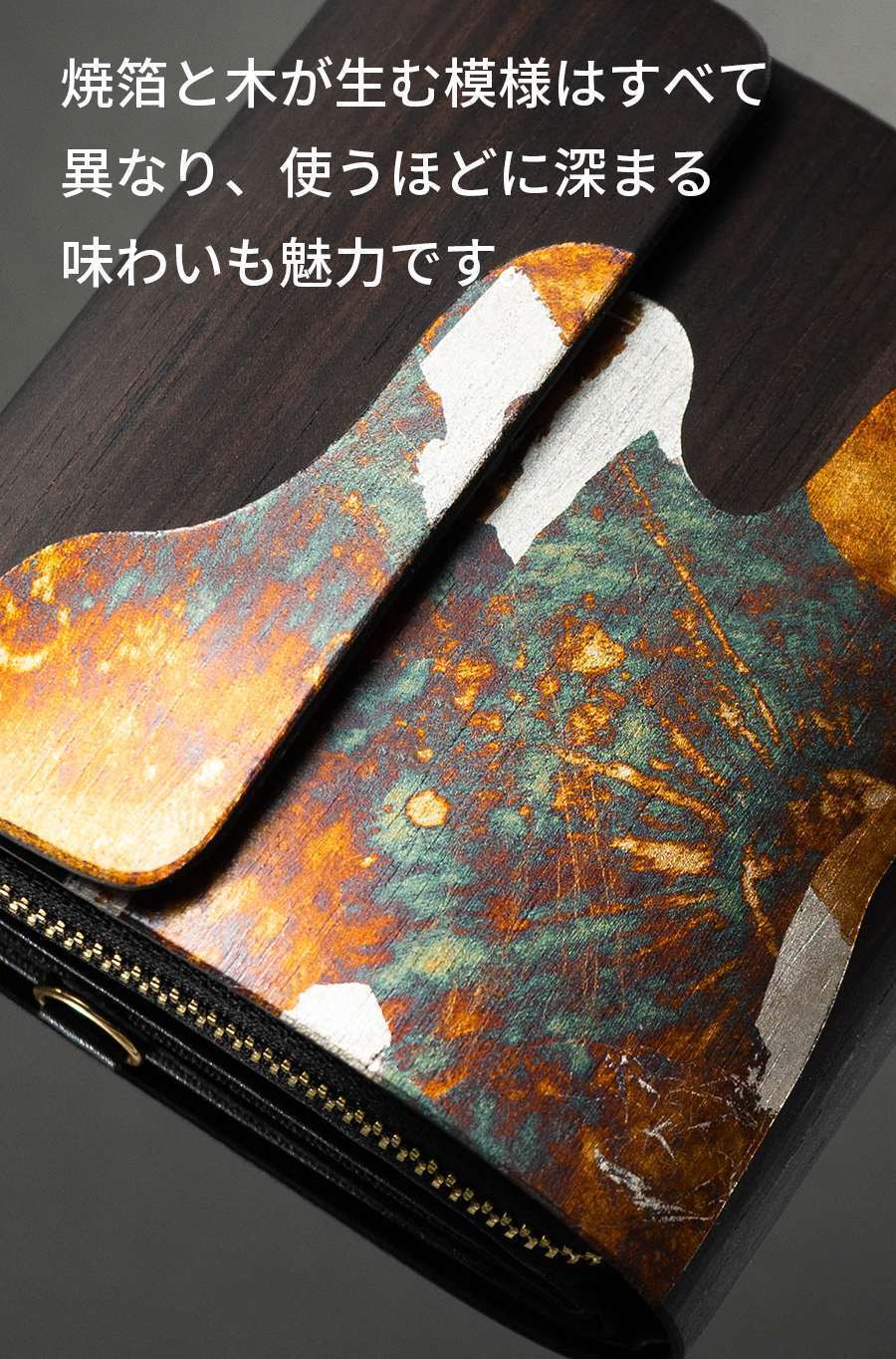 財布に施された焼箔技法による模様は、すべてが一点もの。
