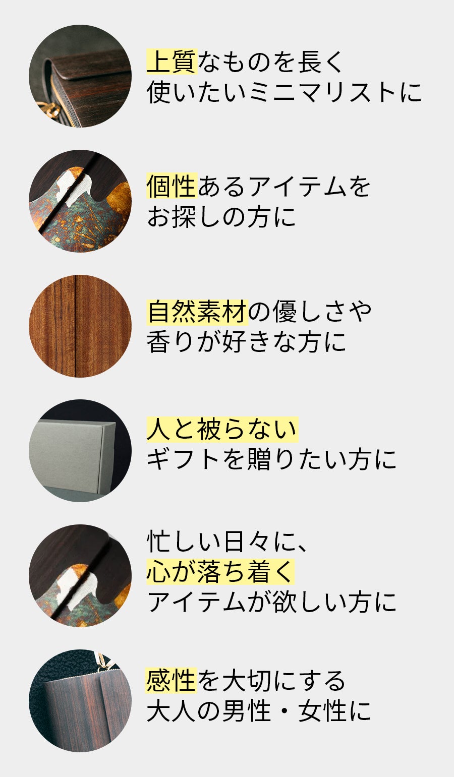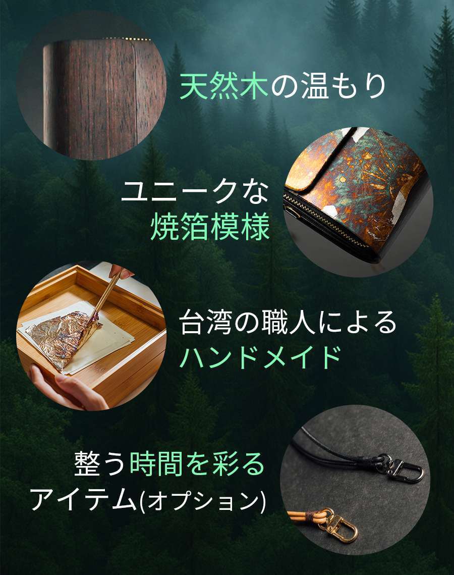 事業内用:台湾のデザインスタジオで、天然木材や独自の焼箔技術を活かした財布やライフスタイル製品を企画・製造しています。クラフトマンシップと現代的デザインを融合し、自然の温もりを日常に届けています。