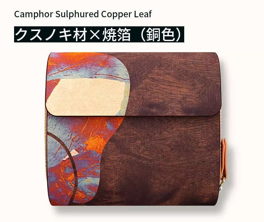 防虫・薬効でも知られる香り高い天然素材。すっきりとした木目と自然なやさしさが特徴です。赤い銅箔が、夕焼けのような温かさを宿します。
