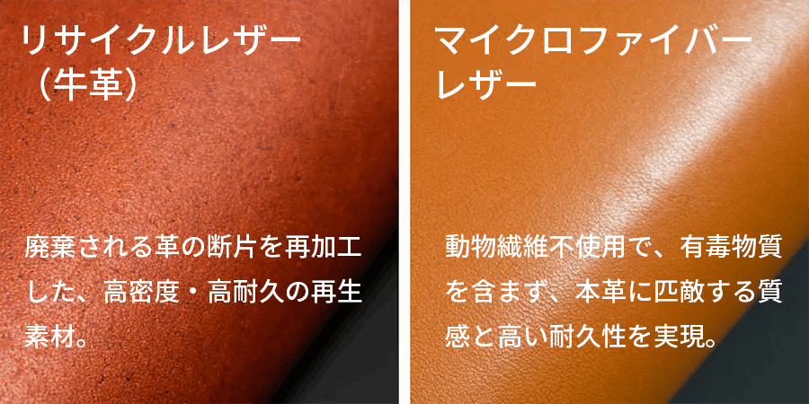 木の風合いを残しながら、柔らかさとしなやかさを持たせるために、不織布や補強メッシュを挟み込み、裏面には環境に配慮したレザー2種を採用しています。