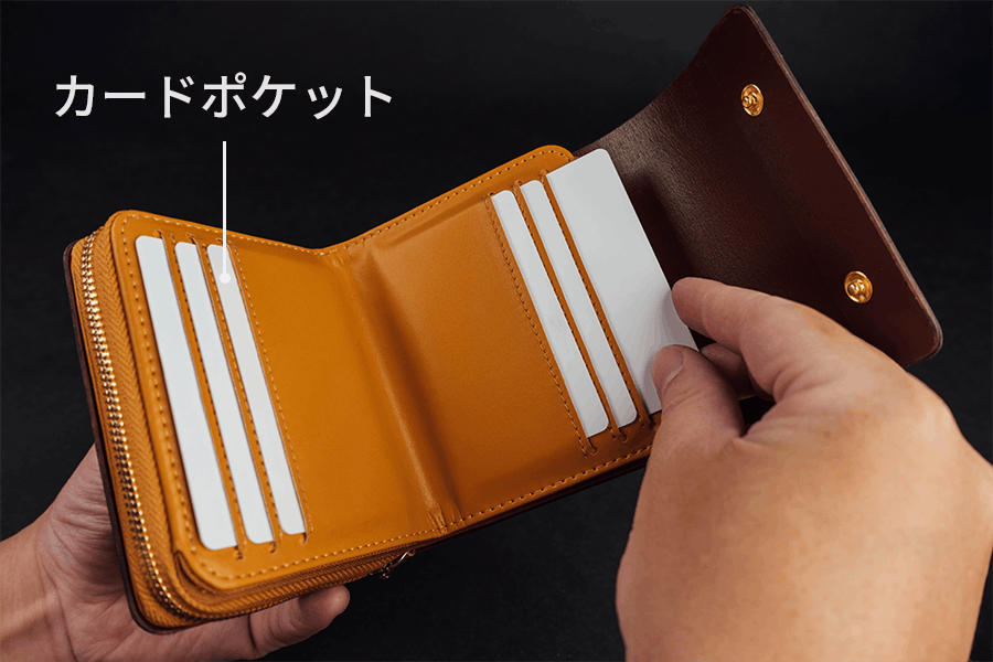 6つのカードポケットは適度なゆとりがあり、取り出しやすさと収納力を両立。