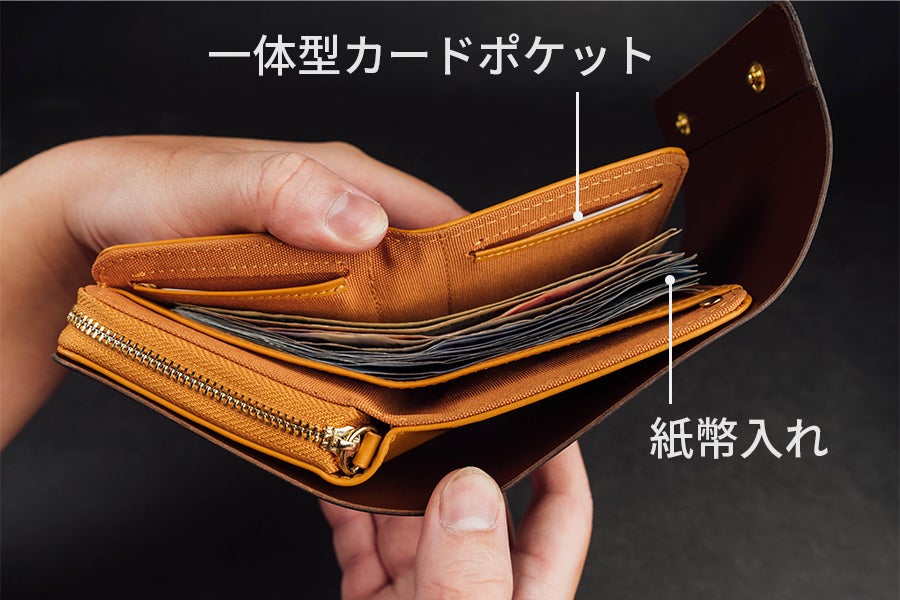 セミオープン構造の紙幣ホルダーは便利な仕切り付き。用途や通貨ごとに分けて収納することもできます。