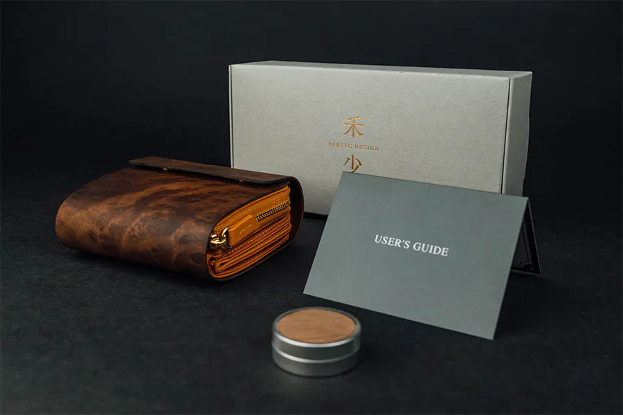 財布表面の木材をやさしく保護・保湿するための専用ケアアイテムです。使い込むほどに深まる風合いを美しく育てます。