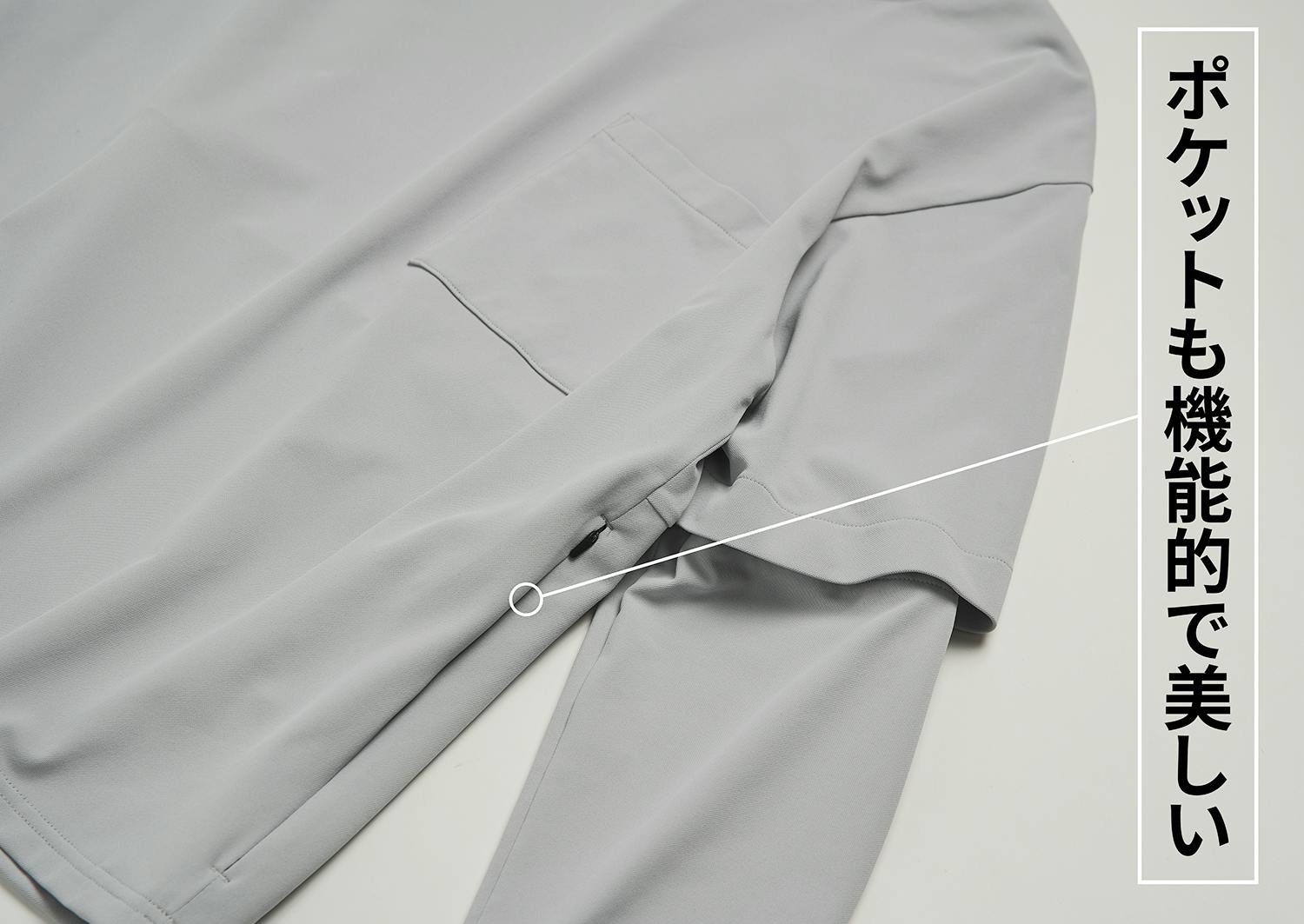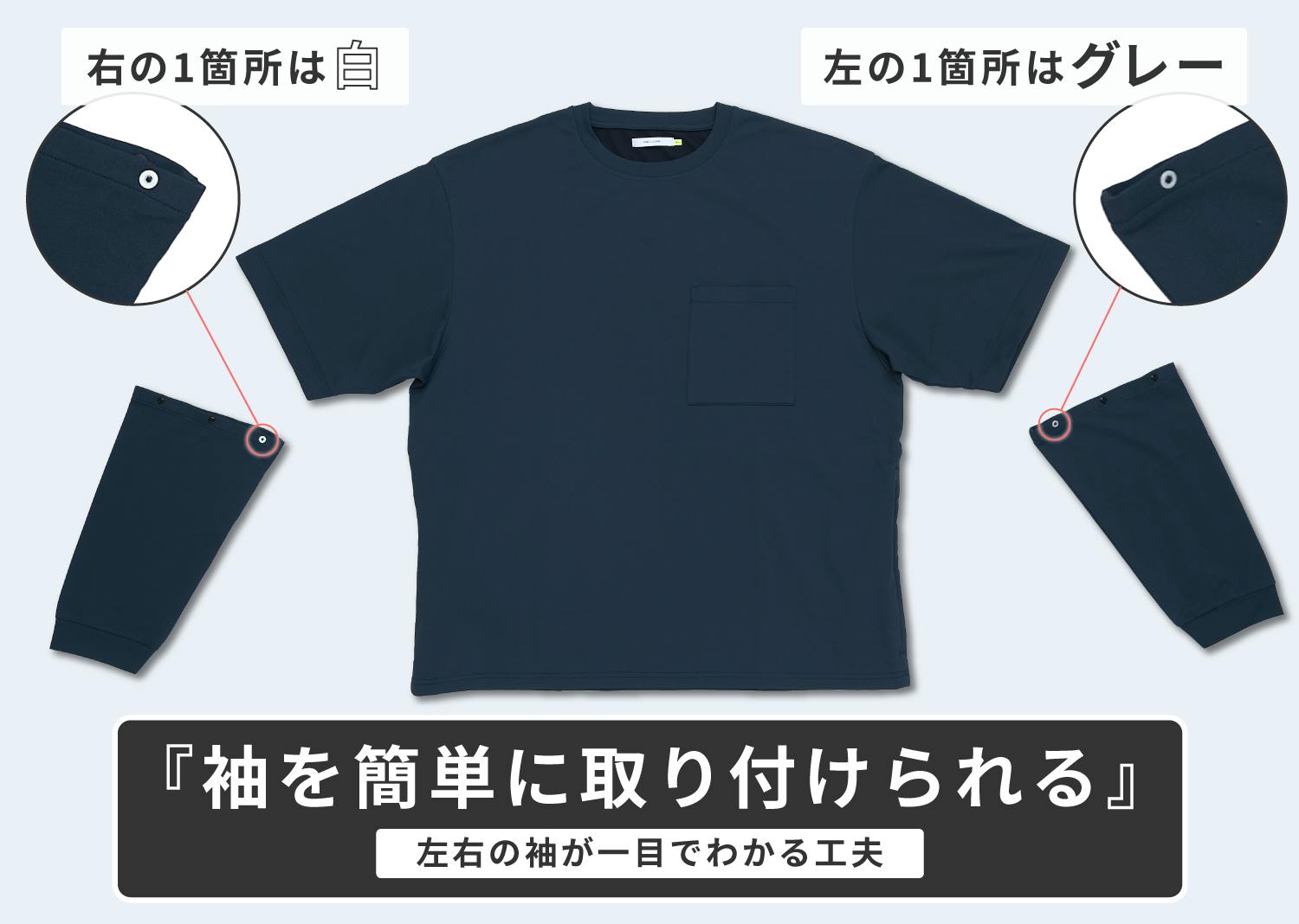 今回のプロダクトでは、未来の快適さを誇る『MOON-TECH®』を、年中ずっと着ていただけるように半袖と長袖の『2WAY仕様』に!