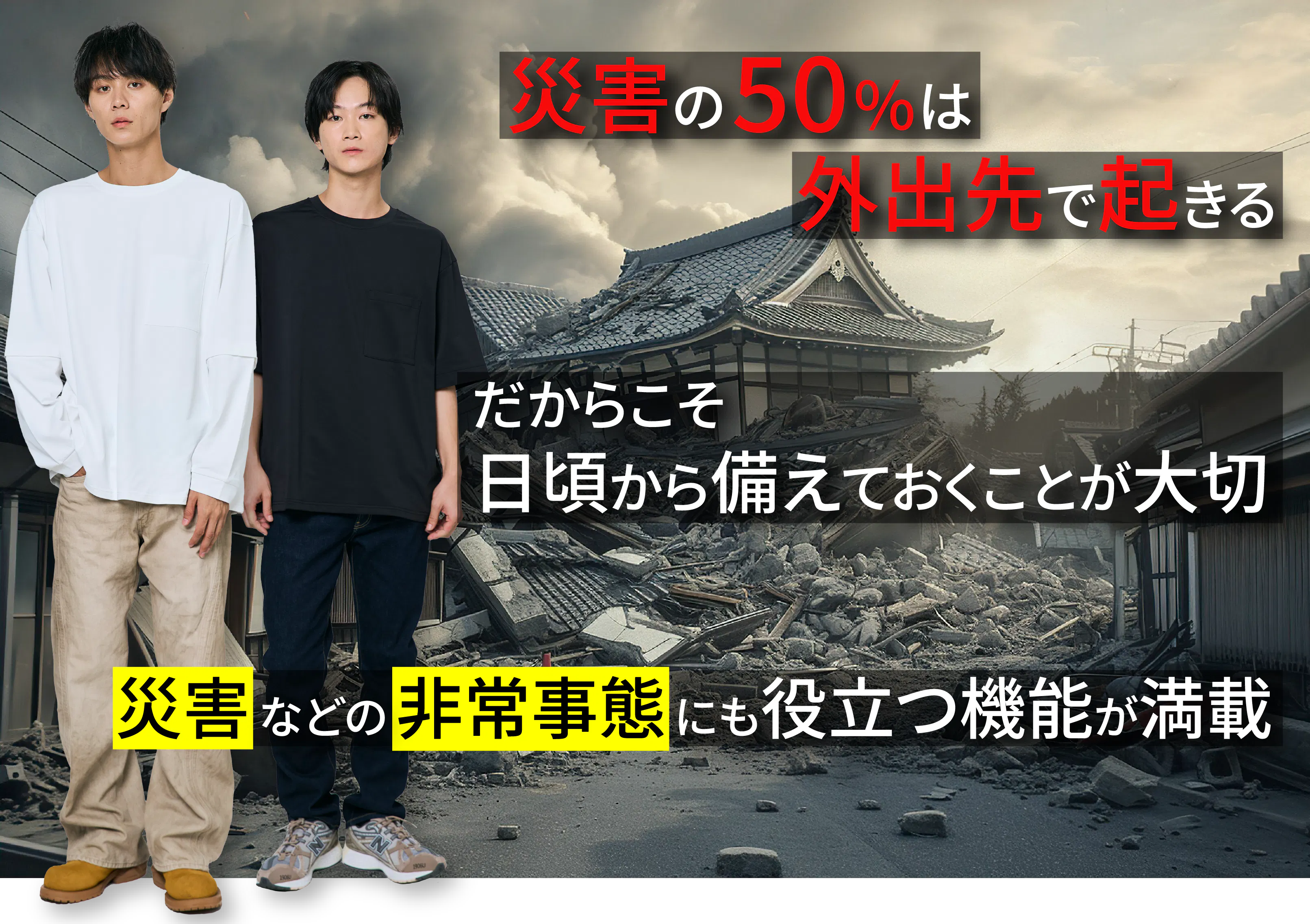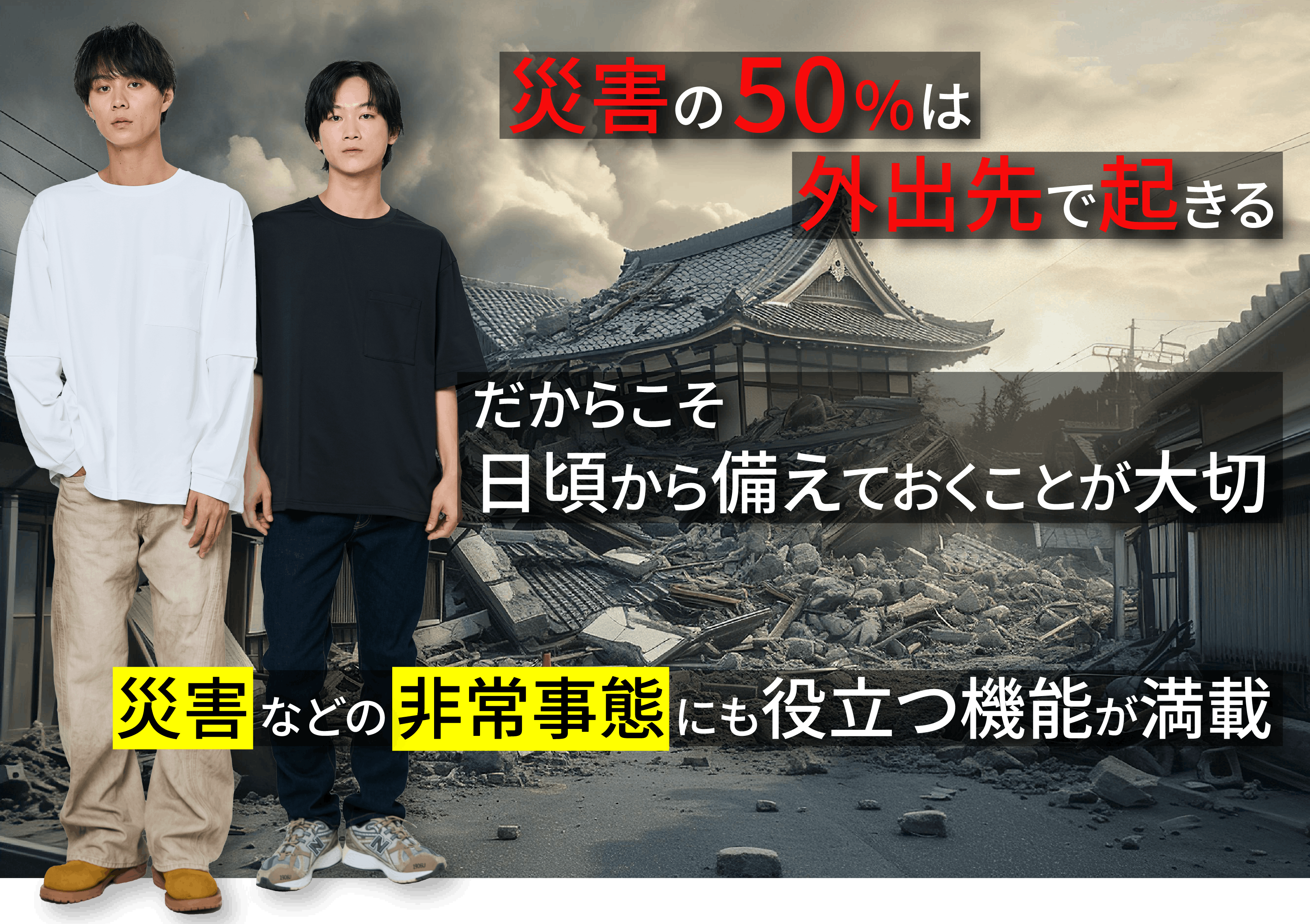 「MOON-TECH® 5POCKETS 2WAY TEE」なら、圧倒的な機能性と大容量の収納ポケットを備えており、災害対策としても非常に頼りになります。
