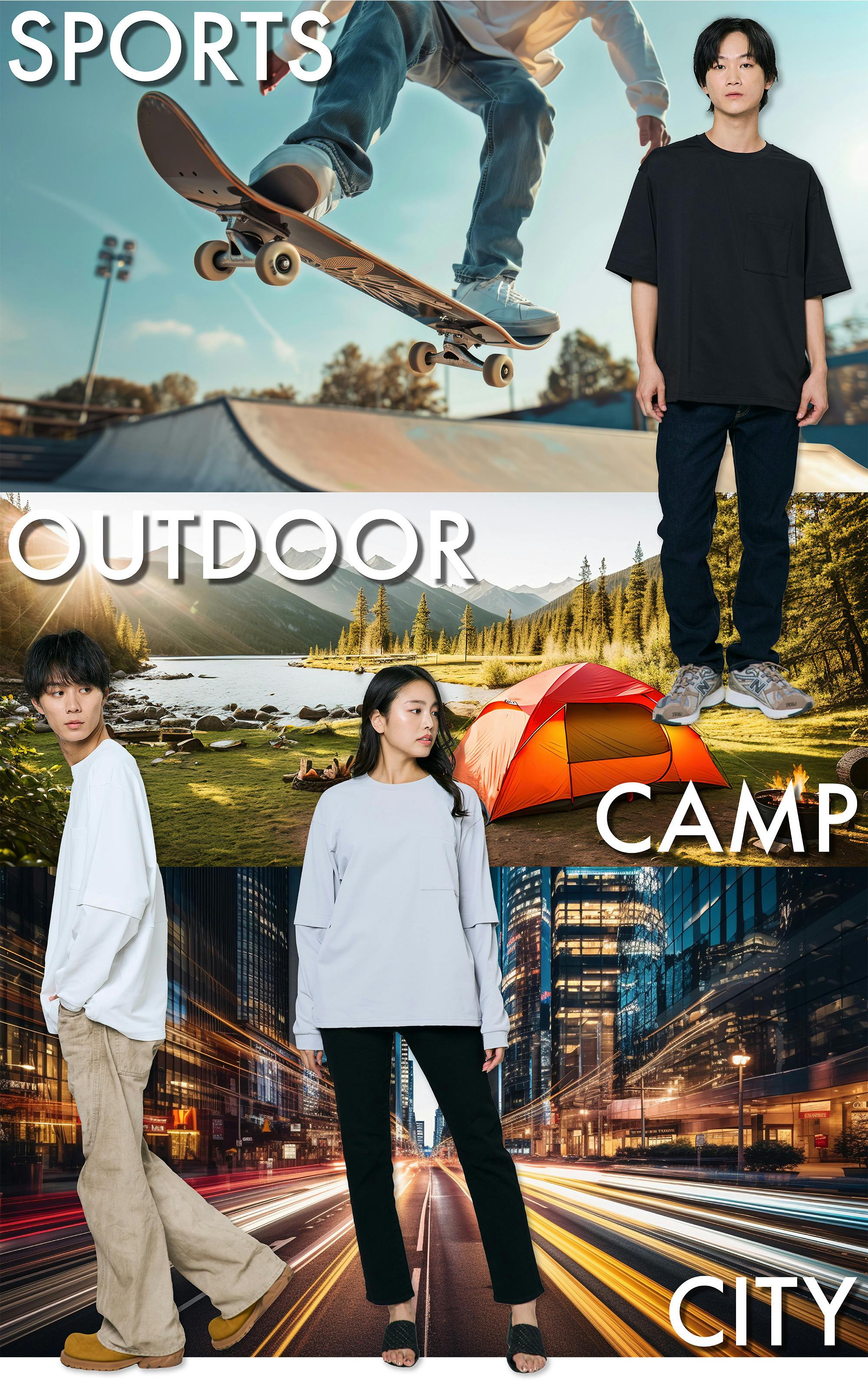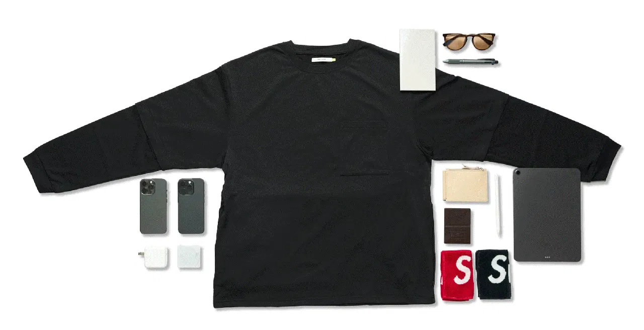 スポーツやアウトドアはもちろん、ビジネスからプライベートまで、幅広いシーンで活躍する「無敵の2WAY手ぶらT」
