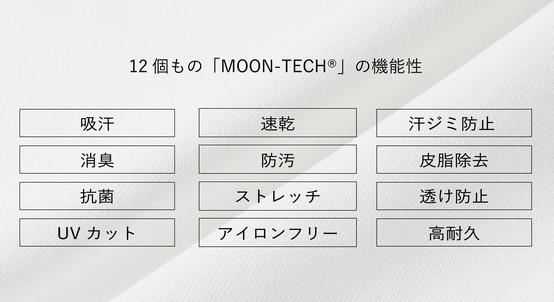 「MOON-TECH®」は、東レ発のスピンオフベンチャー“MOONRAKERS”が、日本の誇る先端技術とクラフトマンシップ(職人技)を結集して創り上げた、「過剰なほどの機能性」を持つ、驚きの先端テクノロジー素材です。