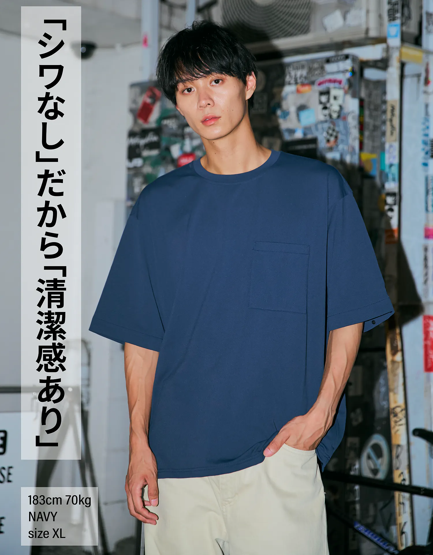 このTシャツは高い防シワ機能を備えており、洗濯後に軽く手でシワを伸ばすだけでアイロンいらず。