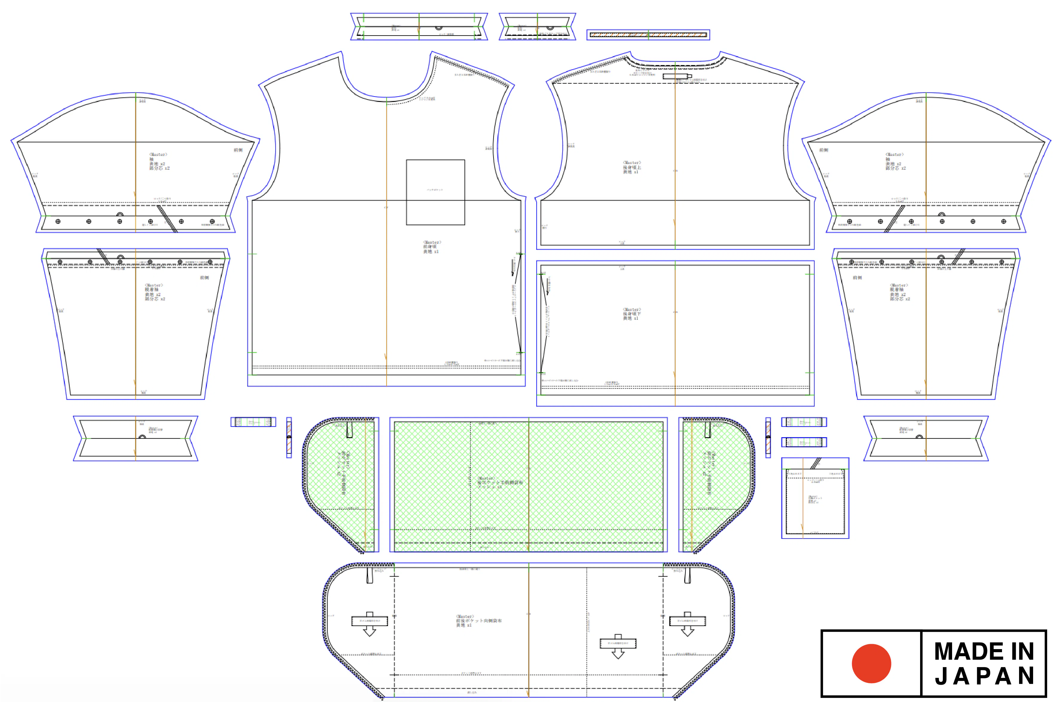 しかしRE:LOREの商品は着心地、快適性、シルエット、機能性などすべてにおいて『最高』を追求するため、日本が誇るプロフェッショナルに型紙(パターン)の制作を依頼しています。