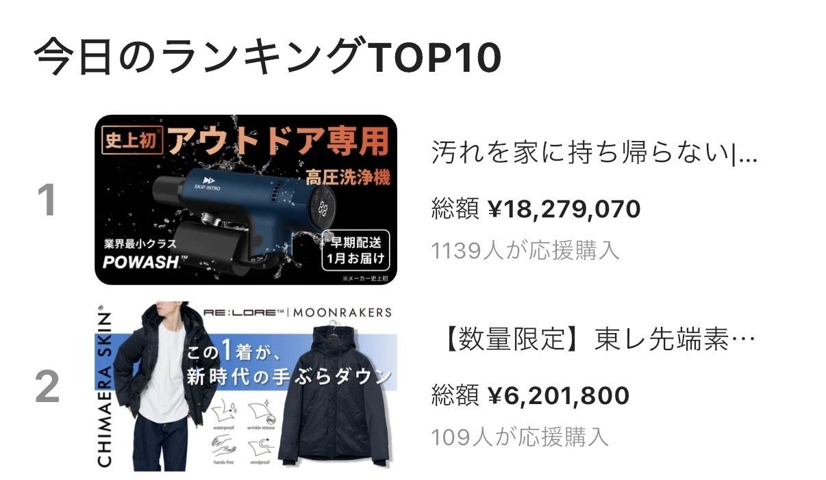 おかげさまで、公開初日Makuake総合ランキング2位、2日目は4位獲得!