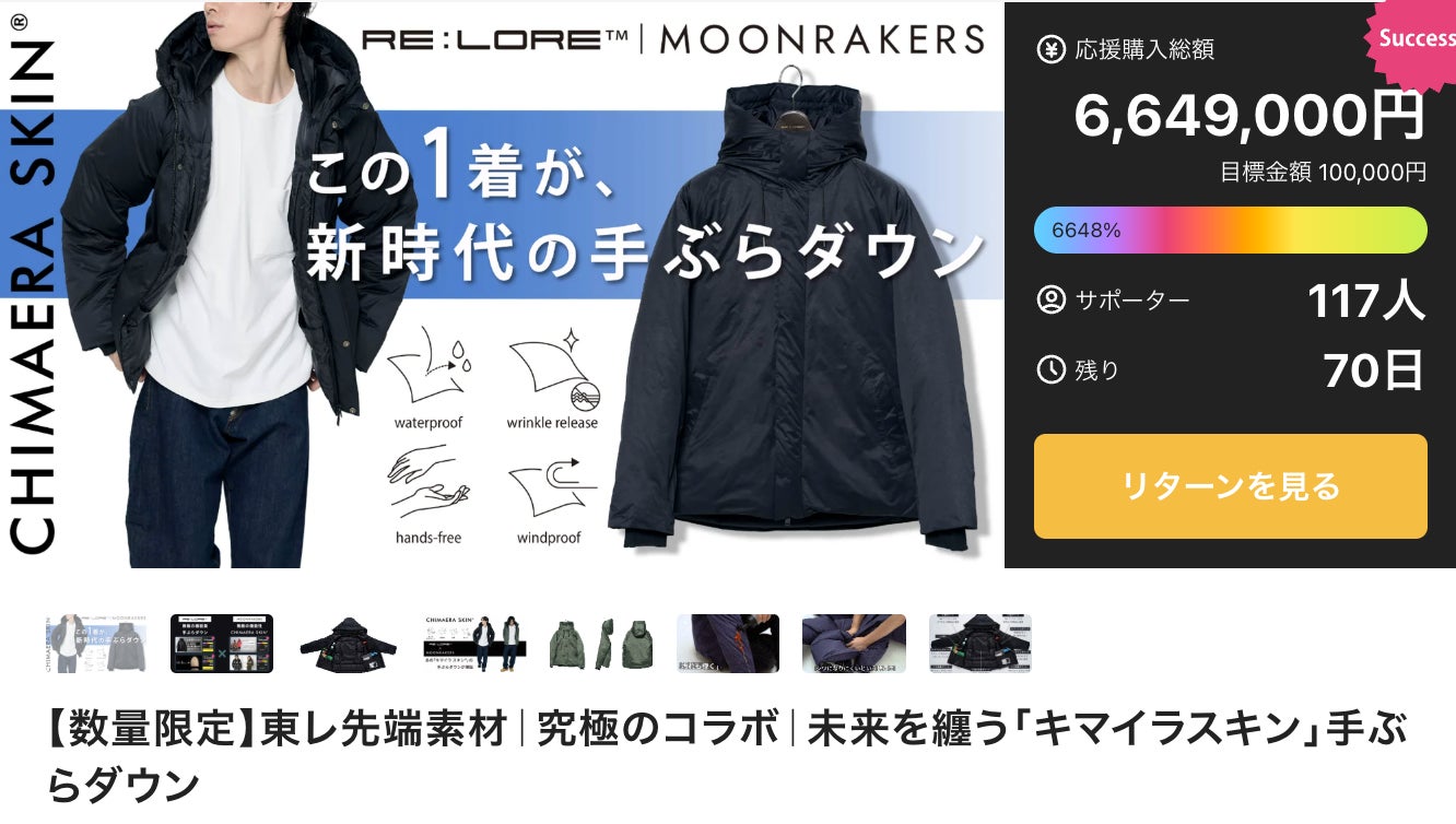 MOONRAKERSの代表的な素材「CHIMAERA SKIN®」が、RE:LORE™の「手ぶらダウン」に革新をもたらしました!