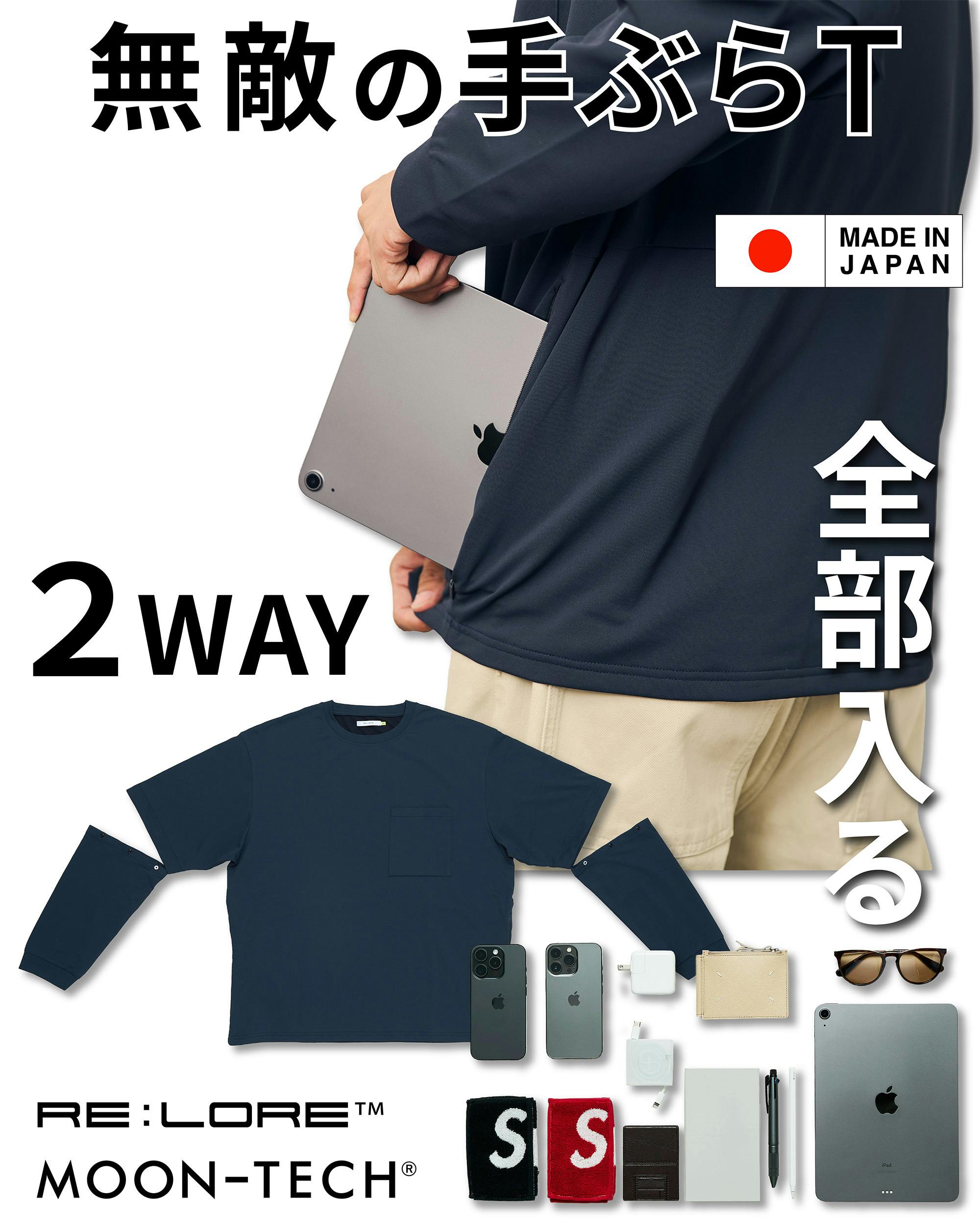 これは「未来の定番服」を目指したTシャツMOONRAKERSの宇宙技術素材「MOON-TECH®」と、RE:LOREの手ぶら機能が融合したこのTシャツは、