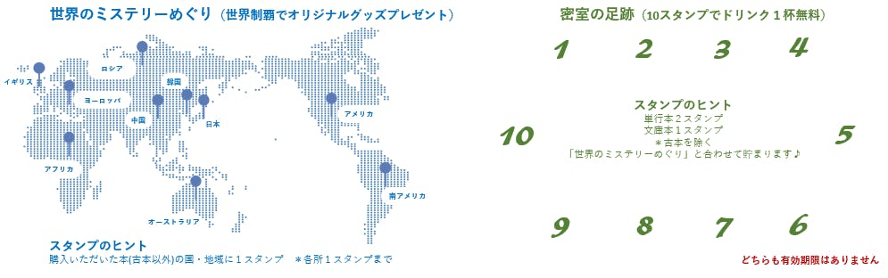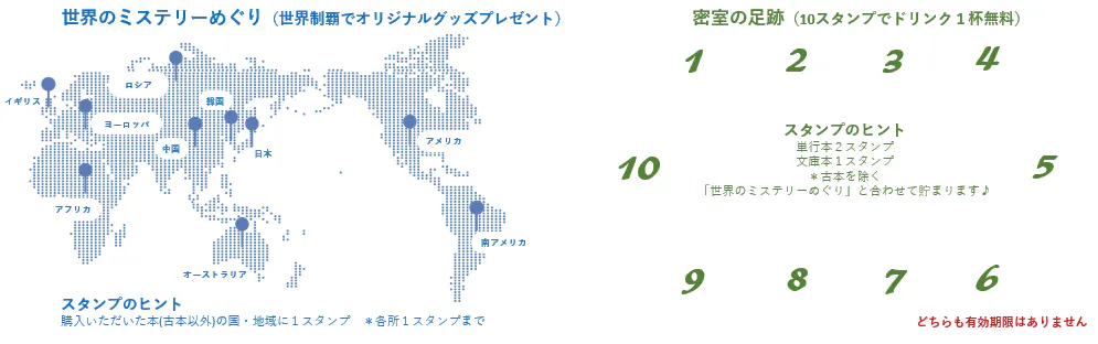世界のミステリーめぐり:購入した本の国・地域に1スタンプ *各所1スタンプまで