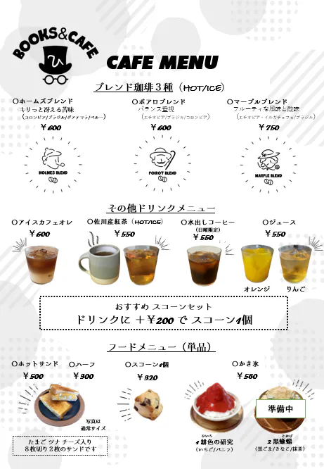 ブレンド珈琲には、名探偵をイメージした3種類をご用意しております。