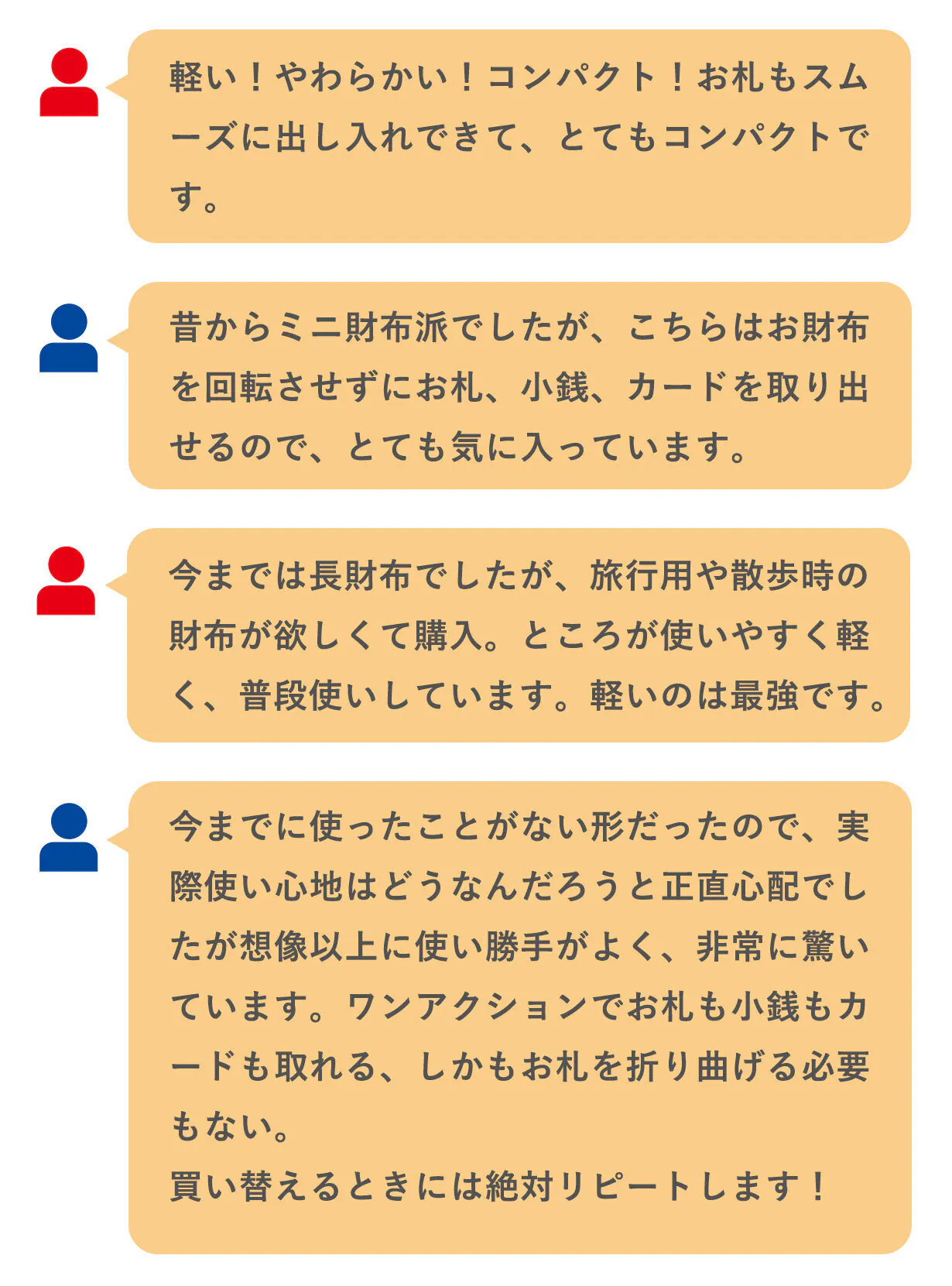 そうならない為に “ 使いやすさ ” を追求したのがこのミニ財布。テレビやSNSでも多数ご紹介頂き、こんなにたくさんの方にご利用頂いています