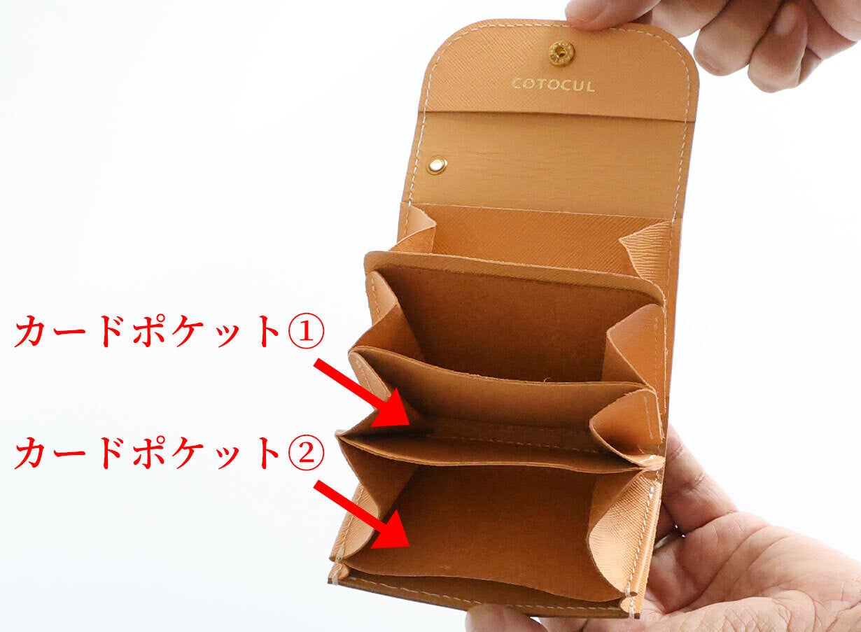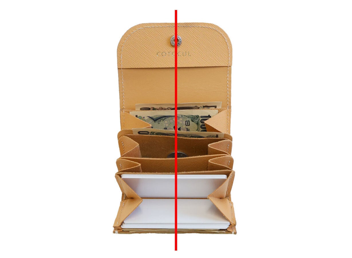 フタを開けるだけで全てにリーチ出来るので出し入れ簡単。財布を横向ける必要が無いので中身がこぼれる心配もありません