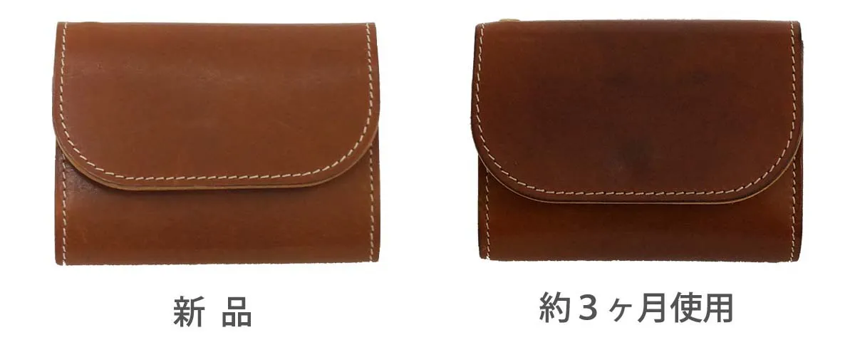 なめし工程でタンニンを入れているので、使用する程、革らしい色艶が出てきます