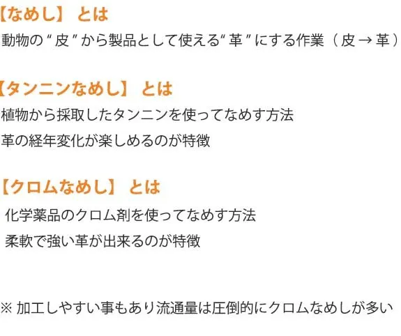 タンニンなめしとクロムなめしの長所を活かす為、ハイブリッドでなめし工程を行う事で、経年変化を楽しみながら長持ちする革に仕上げました