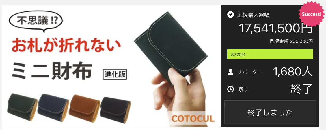 2025/09/12 11:30※本配信は過去にご購入、お気に入りにご登録いただいた全てのユーザー様に配信させて頂いております。重複受信されるユーザー様にはご迷惑をお掛けしますがご了承願います-----------------------------------皆様、こんにちは本日9/12(金)11:30~大人気のお札が折れない【ミニ財布】と【小さい長財布】を希少な蛇革で限定生産したプロジェクトがスタートいたしました。-----------------------------------【クーポン情報】■【期間限定】5% OFFクーポン■9/15(月)23:59まで■最低支援金額:10,000円※下記のURLからのご購入のみ有効です。クーポン利用ページ:https://camp-fire.jp/projects/876300/view?ctoken=l6iPZgm1fmMiV8cZクーポンの使い方につきましては下記の添付画像をご確認ください。お札が折れないシリーズの開運財布は、蛇革を国内タンナーによる独自加工で、1枚ずつ染色し、金箔塗りで仕上げました。非常に希少性の高い開運財布は、【ミニ財布】と【小さい長財布】共に限定生産でご用意しております。使いやすさにこだわった機能性はそのままに、日本職人の知識と技術を是非ご堪能下さい。プロジェクト終了までどうぞよろしくお願いいたします。 もっと見る