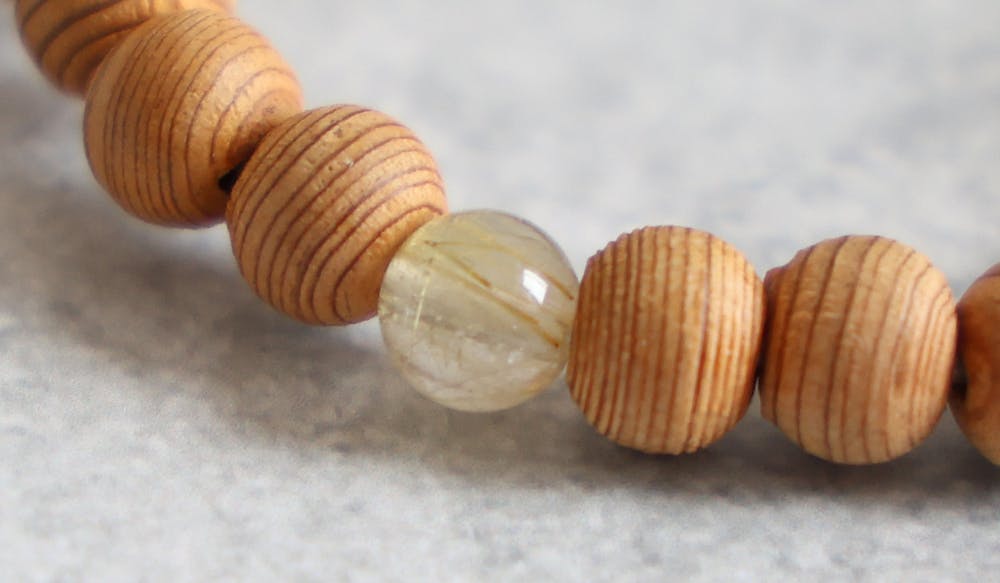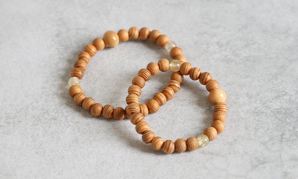 貴重な木材である「屋久杉」を使用した数珠ブレスを京都の念珠メーカーに依頼して特別生産。