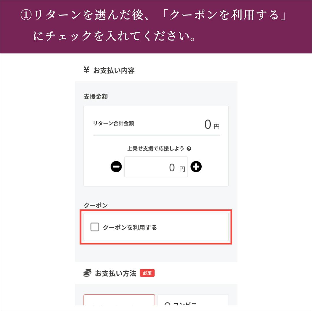 クーポン利用ページ:https://camp-fire.jp/projects/876300/view?ctoken=l6iPZgm1fmMiV8cZ