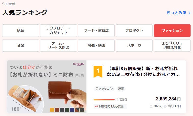 皆様、こんにちは。非常に暑い日が続いておりますが、皆様はいかがお過ごしでしょうか。くれぐれも体調には気を付けて健やかにお過ごしくださいませ。-----------------------------------皆様のご支援のおかげで、ファッションジャンルのランキングで再び1位を獲得することができました。本当にありがとうございます。こうして、まだ私たちのミニ財布をご存じないユーザー様に出会えるキッカケが出来ること、とても喜ばしく思っております。こだわりの素材や機能性、また私たちの想いや活動が、より多くの方々に知っていただけるように、今後も力を尽くしてまいります。ご家族やご友人など、興味をお持ちいただけそうな方が周りにいらっしゃいましたら、一言お伝えいただけますと非常に嬉しく思います。-----------------------------------京都の工房では、日々生産を行っております。発送の際にはこちらの活動報告でもお知らせいたしますので、商品到着まで楽しみにお待ちいただけますと幸いです。それでは引き続きの応援、何卒よろしくお願いいたします!