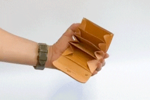 注)ブカブカにならない様にはじめはキツイ目のサイズになっていますが、使用していくと、入れた枚数に応じて革が伸び、快適に出し入れが出来る様になっていきます