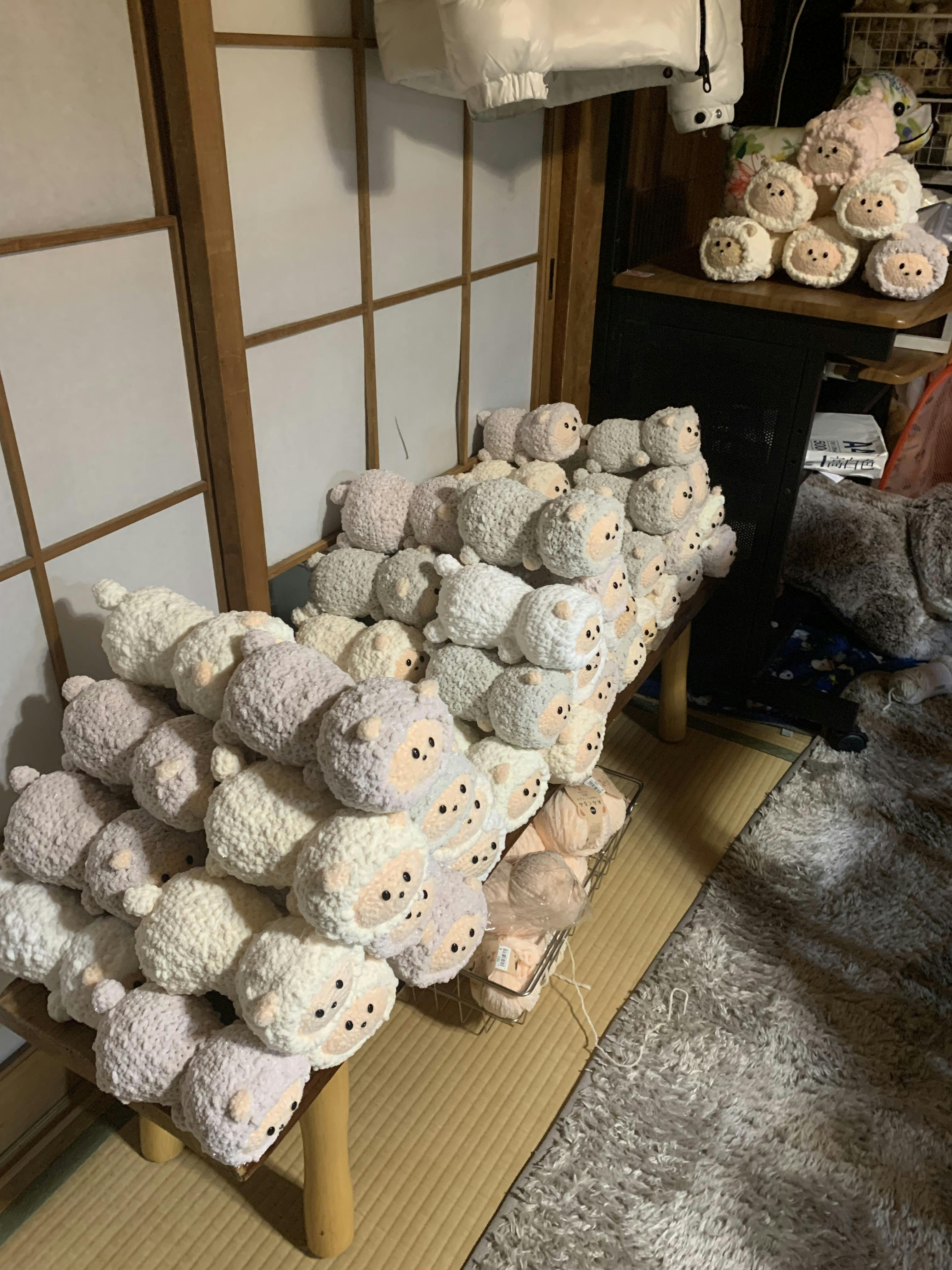- たかお編みぐるみ工房ではこれまで「幸せを呼ぶ羊さん」を1350匹以上製作してきました(2024年6月には1000匹を超えました。)1年間で300匹以上販売している自信作です(1人で黙々と子どもたちのことを、そしてご支援者の方々のことを思いつつ制作しています)。