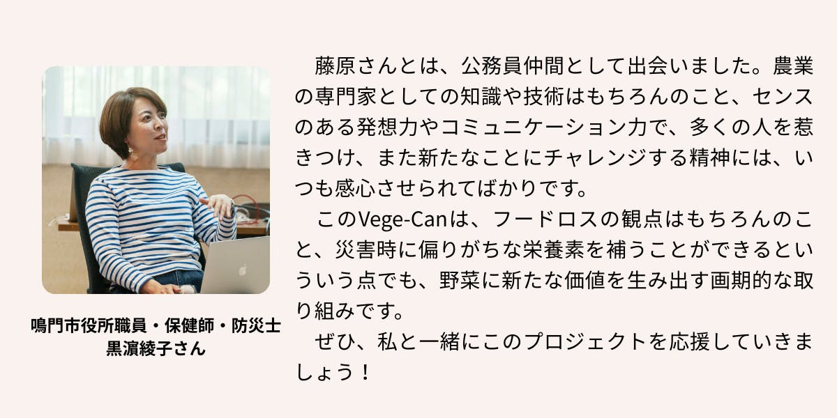 Vege-Canに詰めているのは、野菜だけでなく、地域の絆とみなさんの応援の気持ちです!