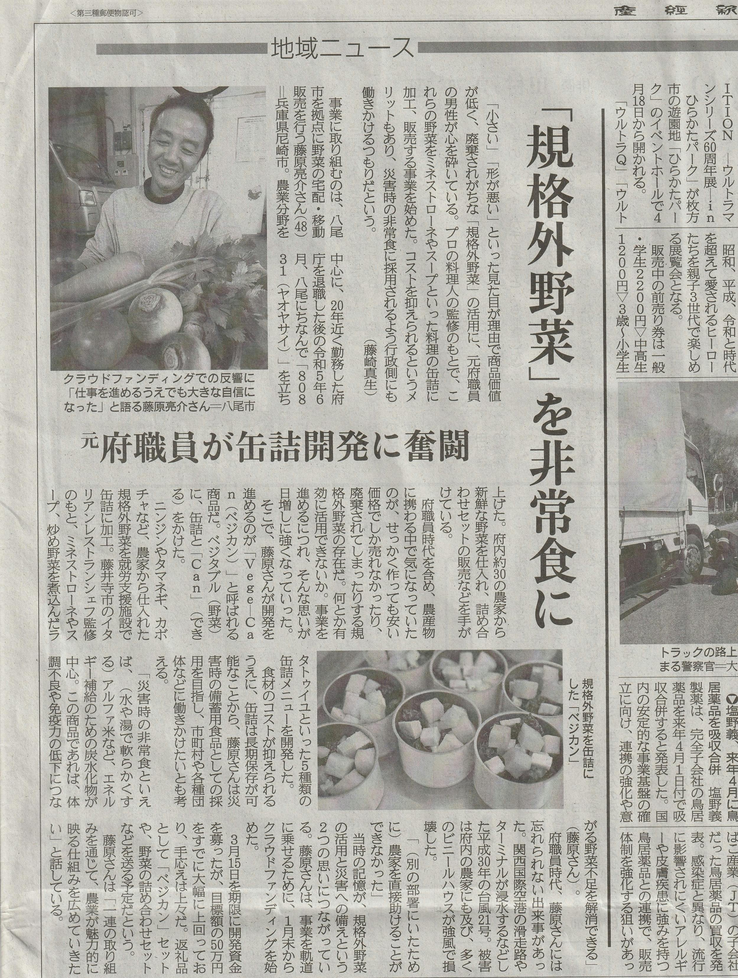 【クラファン終了まであと10日!】Vege-Canの活動が産経新聞に掲載されました