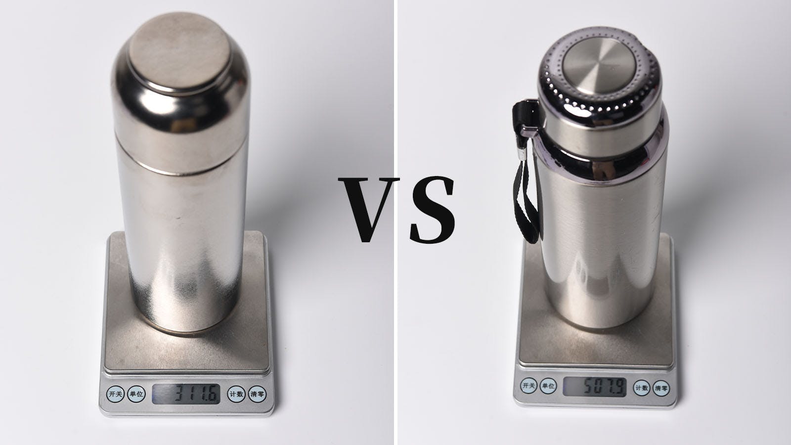 同容量のステンレス水筒は通常500g超えますが、純チタンボトルMagTempTiはわずか310g。