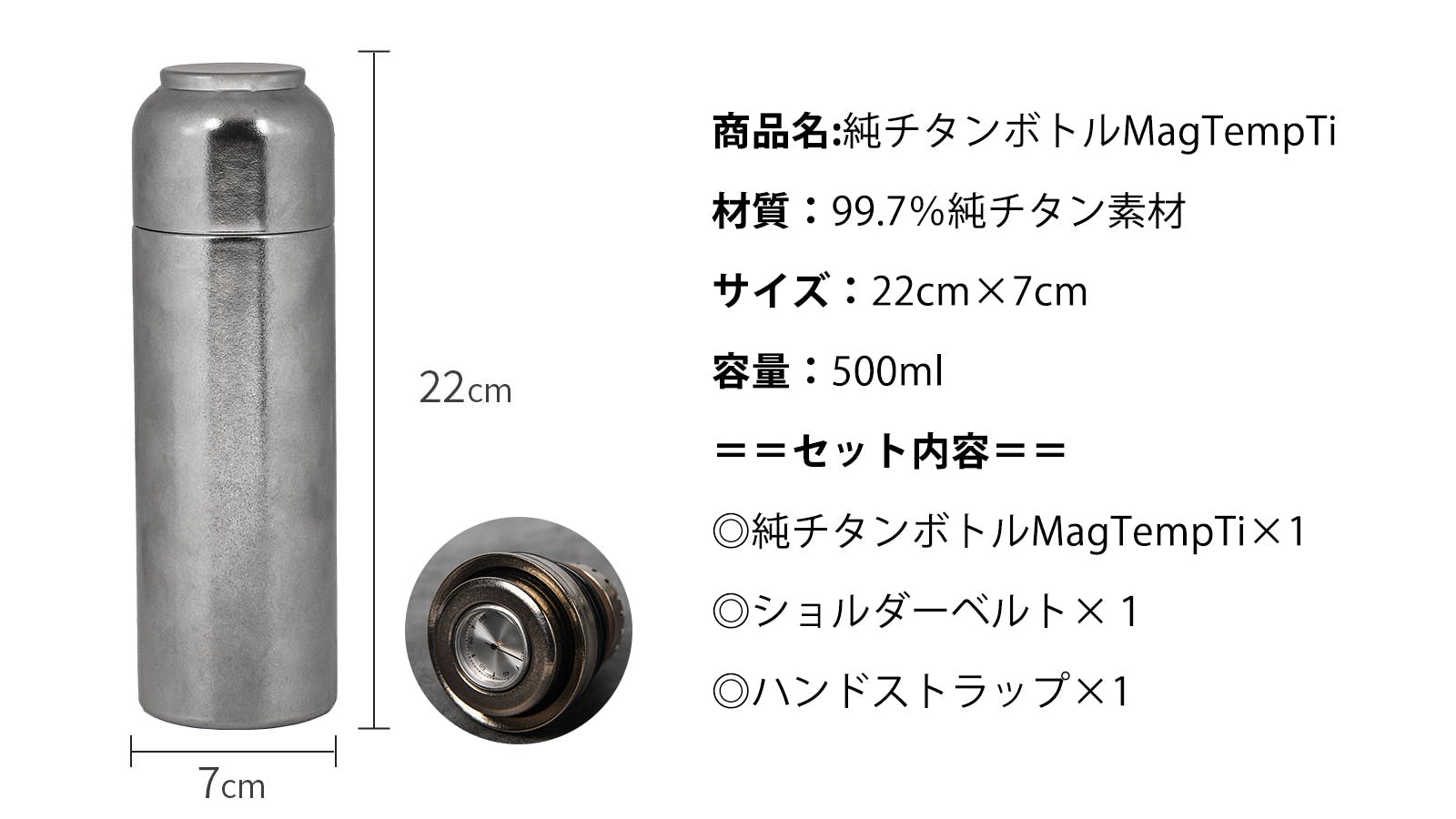 世界にひとつだけの輝き。時間と熱、圧力をかけて丁寧に作り上げた「チタン」だけでは満足せず、さらなる機能性を追求した、あなたのための99.7%純チタンボトル「MagTempTi」が新登場!