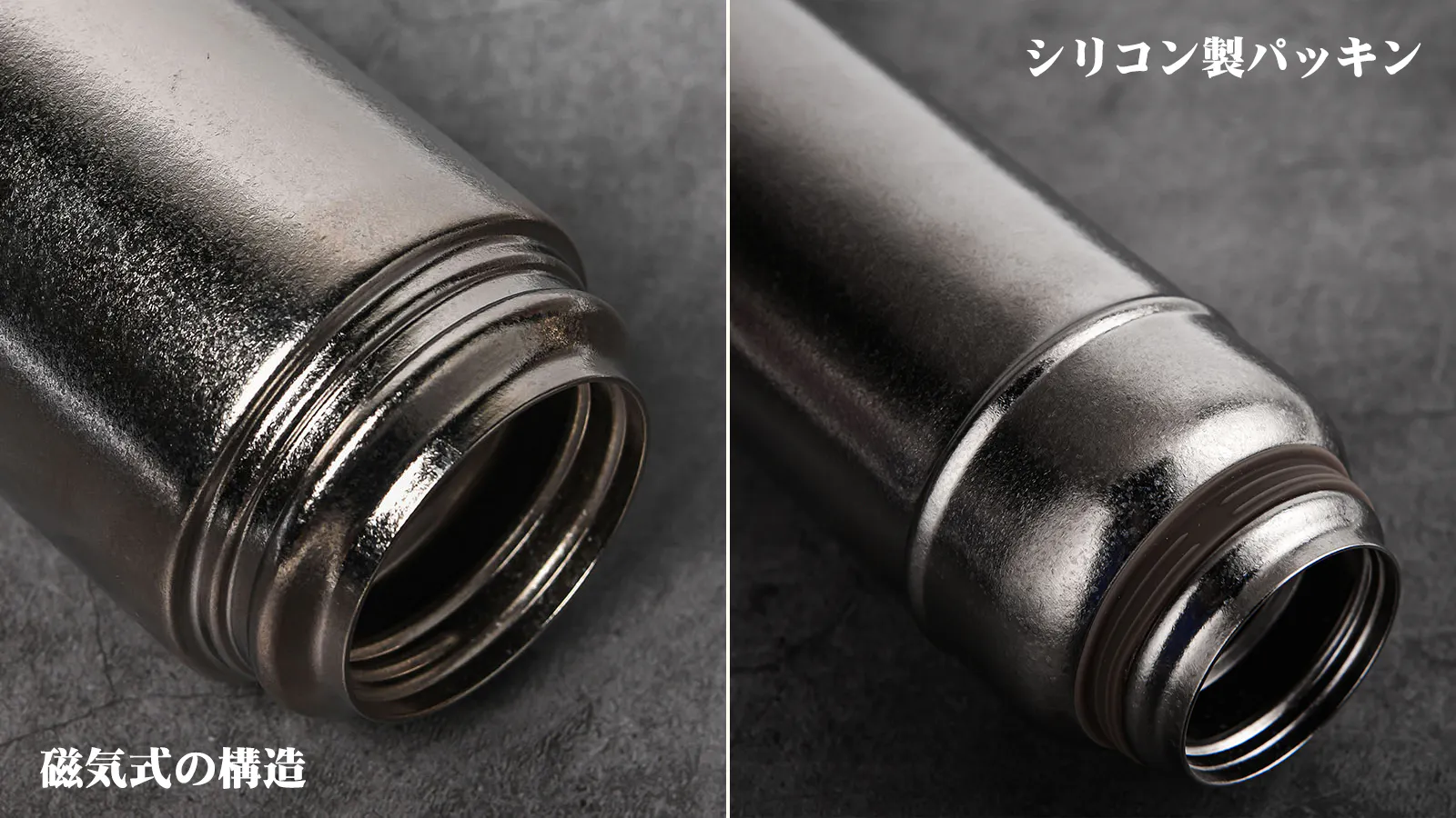 従来品はカップを本体にしっかり固定するためにシリコン製のパッキンを使用していましたが、長時間の使用でパッキンが劣化することがありました。