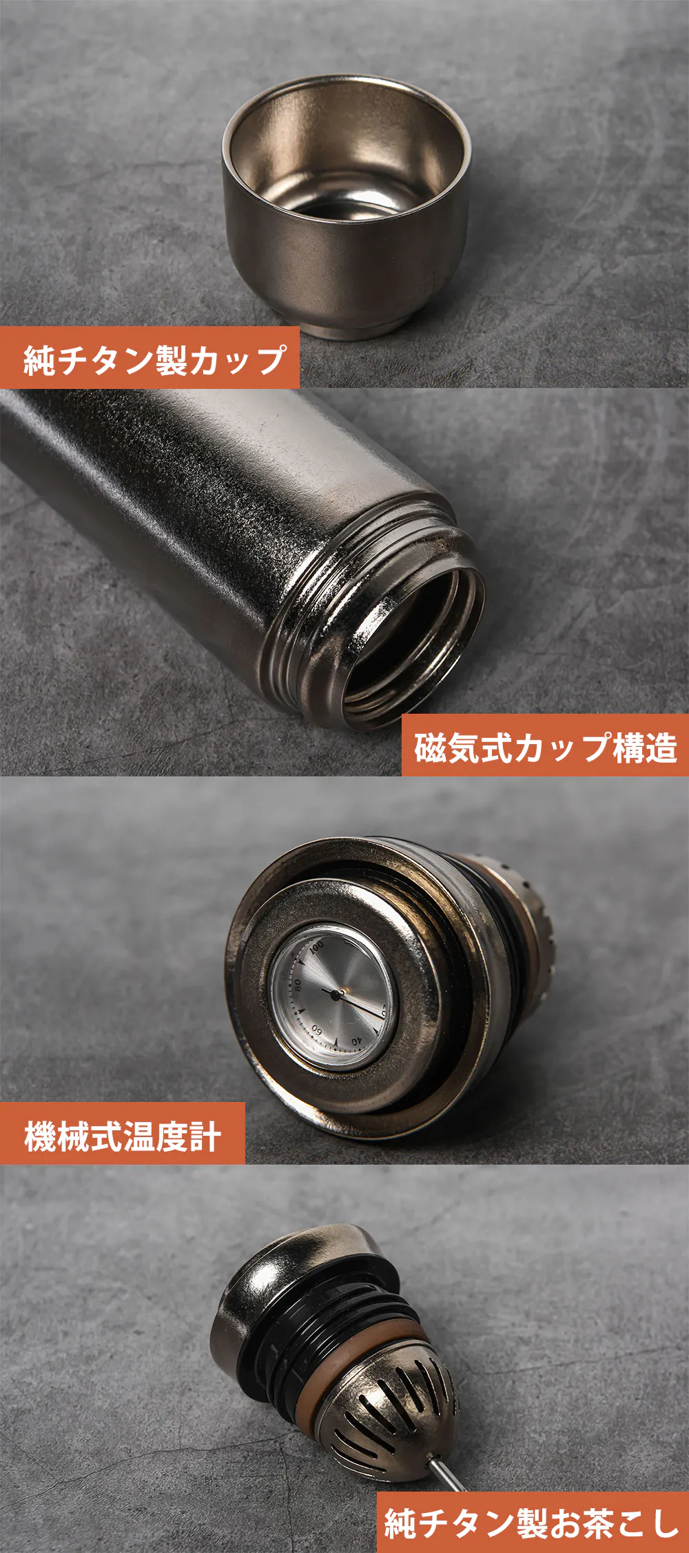 MagTempTiは、99.7%純チタン素材を使用し、お茶こしに至るまでこだわりぬいた作り。