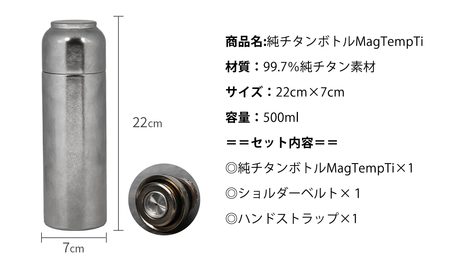 純チタンボトルMagTiは99.7%の高品質純チタンを採用します。