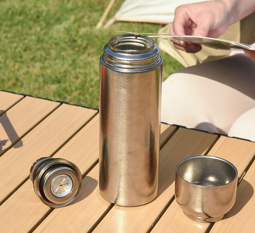 さらに、電源不要の機械式温度計を搭載し、瞬時に飲み物の温度を確認できるため、猫舌の方も安心して使えます。二層チタン真空断熱技術が優れた保温・保冷効果を発揮し、飲み物の美味しさを長時間しっかりキープします。
