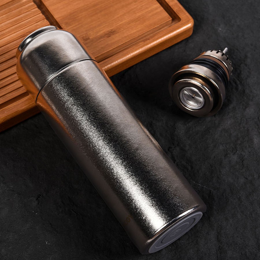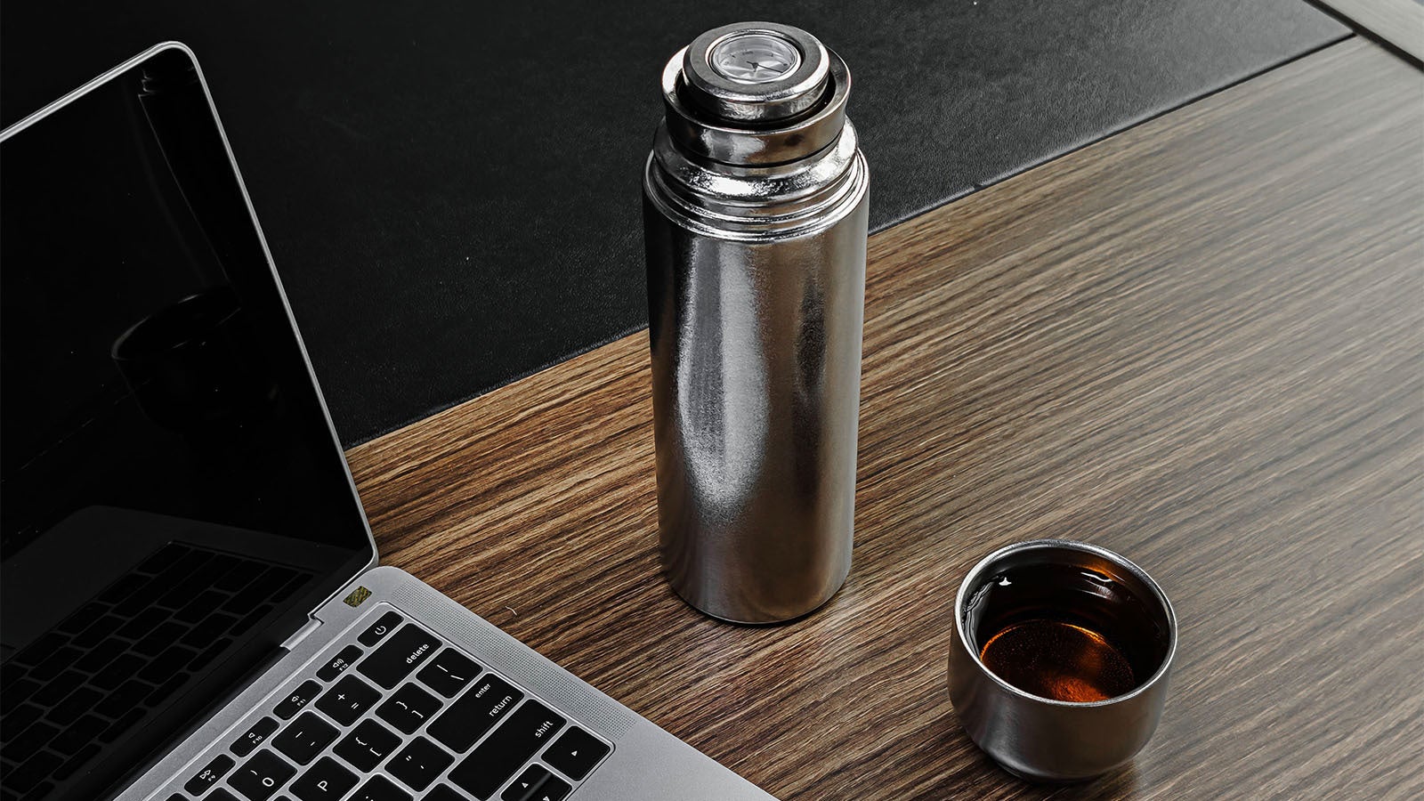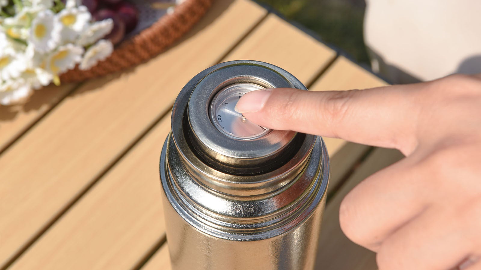さらに、電源不要の機械式温度計を搭載し、瞬時に飲み物の温度を確認できるため、猫舌の方も安心して使えます。二層チタン真空断熱技術が優れた保温・保冷効果を発揮し、飲み物の美味しさを長時間しっかりキープします。